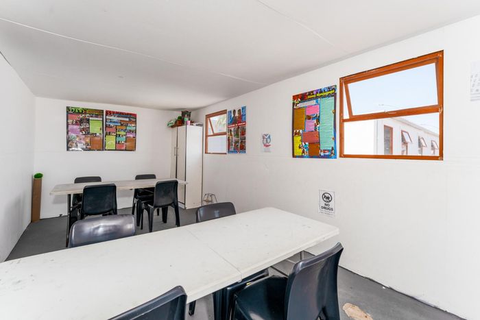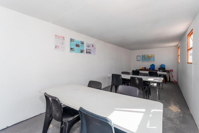 Entrepreneurial opportunity in Pelican Park — prominent corner erf with high visibility and easy access, currently used as a school with removable containers and five open parking spaces.