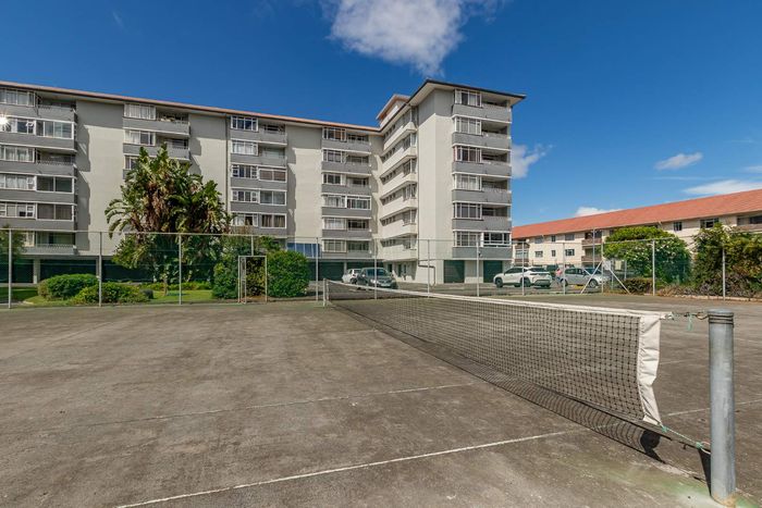 Poolside entertaining in a sought-after area close to amenities with braai and communal tennis court, private balcony and fitted kitchen — two bedrooms, one bathroom and two parking spaces.