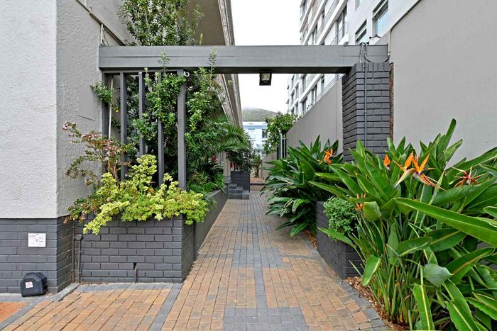 Live steps from the V&A Waterfront and Sea Point Promenade in Green Point, in a turnkey, fully furnished ground-floor apartment with private patio and communal braai. One bedroom, one bath.