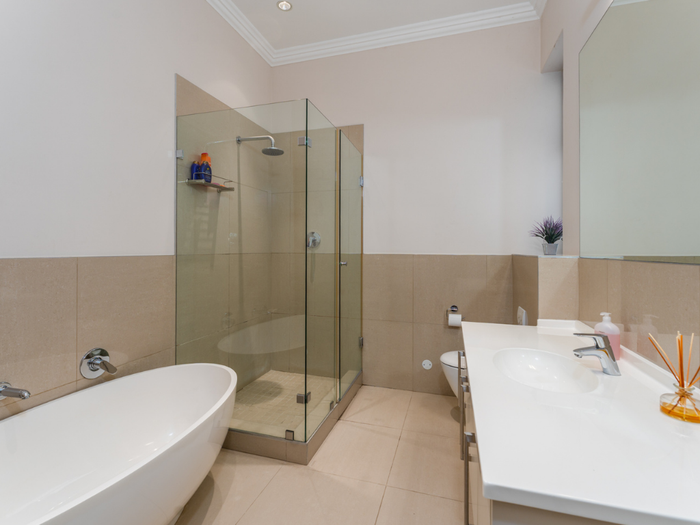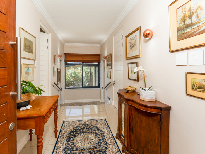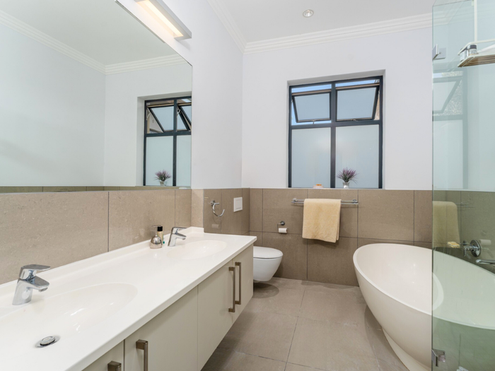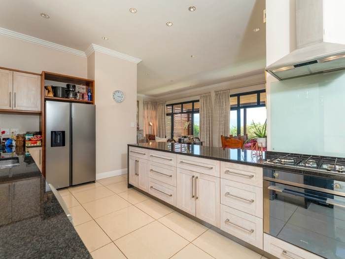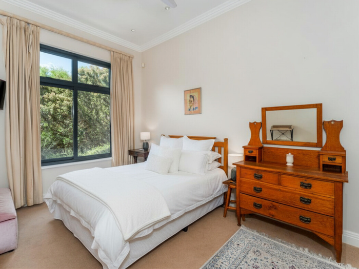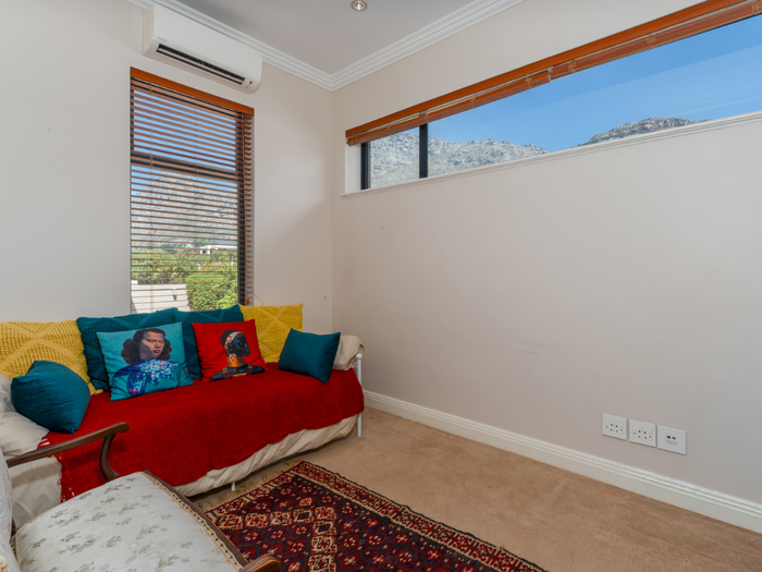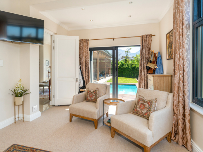 Year-round entertaining on Stonehurst Mountain Estate with north-facing Constantiaberg views and effortless indoor-outdoor flow to a pergola-covered wood-decked pool — four bedrooms, 2.5 baths, double garage.