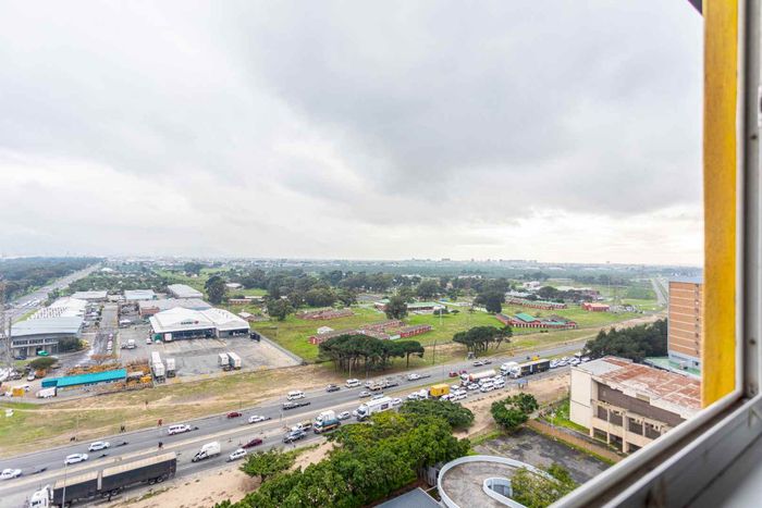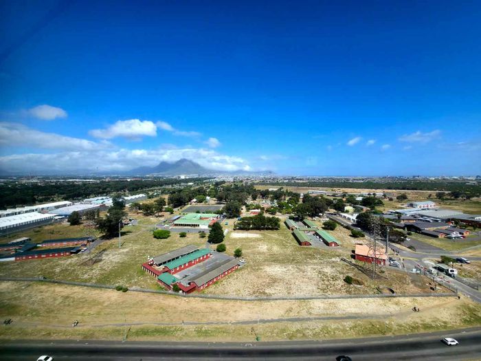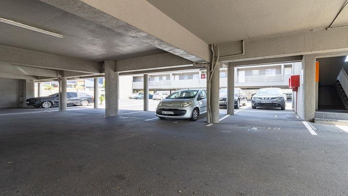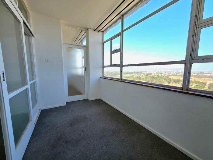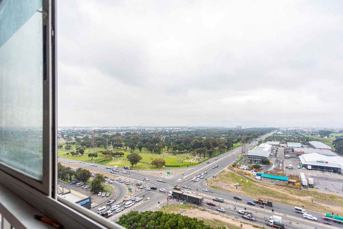 Elevated city living in Mark Heights, Goodwood — 18th-floor panoramic views, open-plan lounge, communal pool, secure gated complex; two bedrooms, one bathroom and a dedicated parking bay.