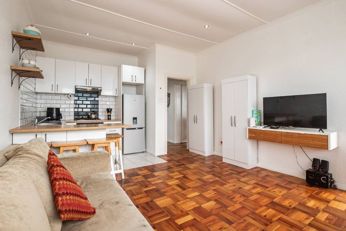 Live above the city's pulse with panoramic Table Mountain and Cape Town skyline views from this top-floor Liberty Grande apartment, modern kitchen, pool, gym, one-bed, one-bath.