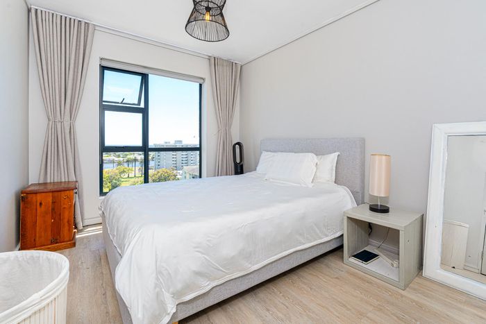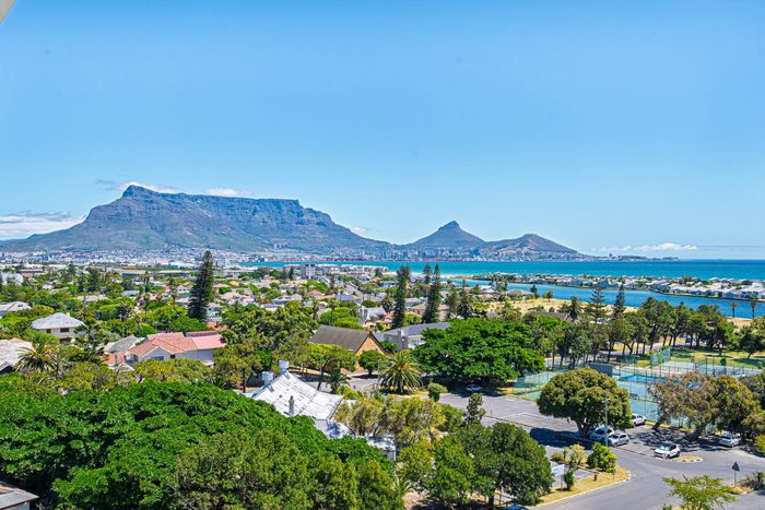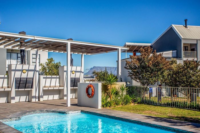 Wake up to panoramic Table Mountain and waterfront views in Milnerton — sixth-floor apartment with clubhouse and pool, inverter backup, two bedrooms, two bathrooms and one parking.