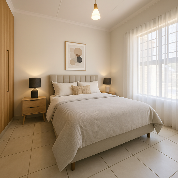 Lock-and-go lifestyle near Tijgerhof Primary School with sunlit open-plan living, a rustic wrap-around garden to design, two bedrooms, one bathroom and tandem garage.