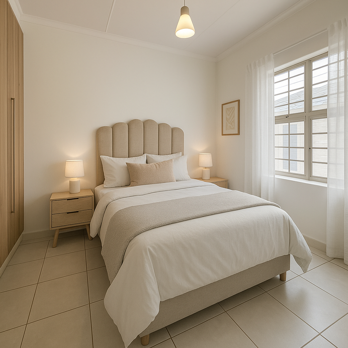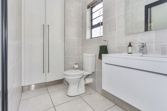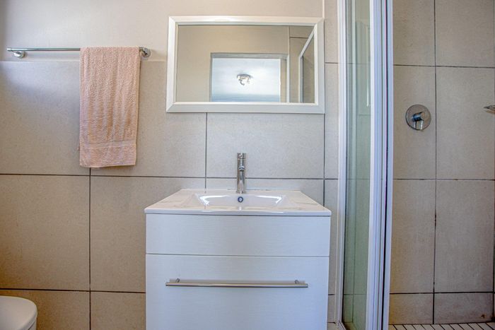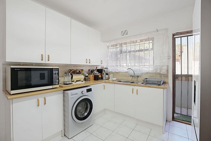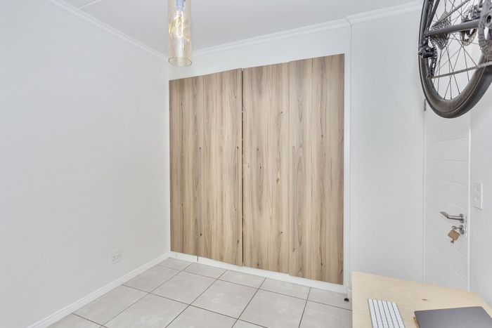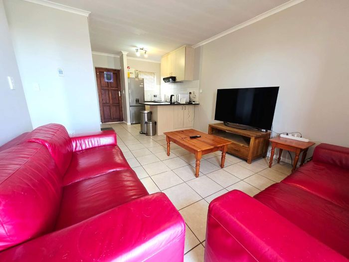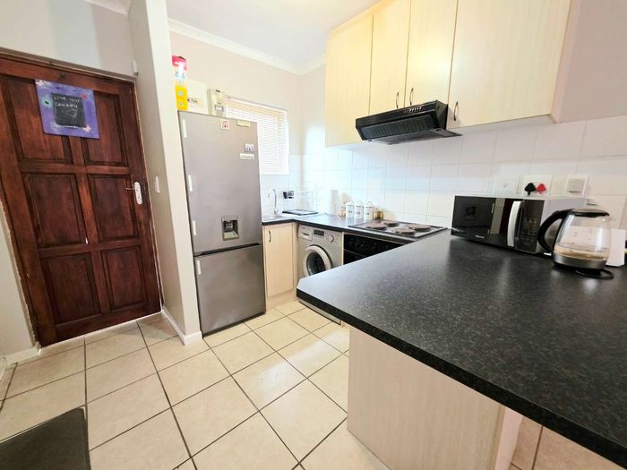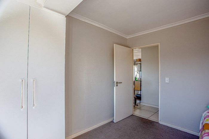 Effortless lock-up-and-go living with communal pool and braai, tucked near shops, schools and main roads; neat first-floor one-bedroom with open-plan living, built-in cupboards and secure parking.