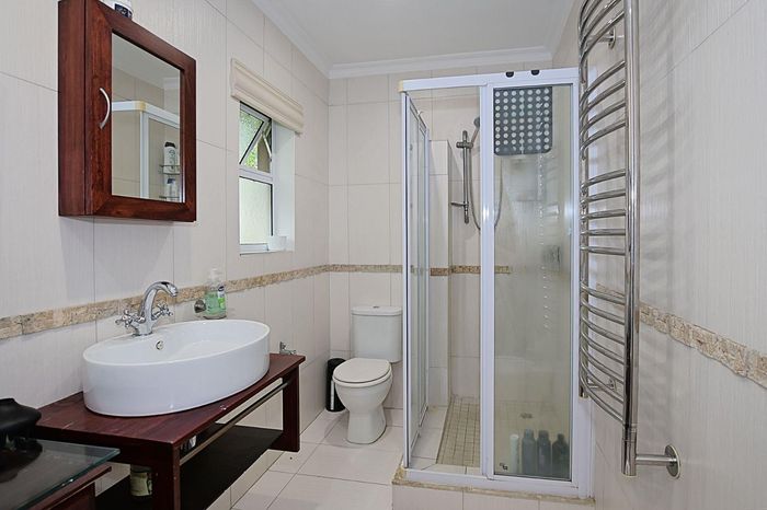 Entertain year-round from a sunny east-facing porch with partial mountain and sea views; covered patio for a built-in braai, staff quarters, walking distance to top schools and Paddocks shopping.