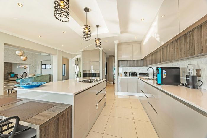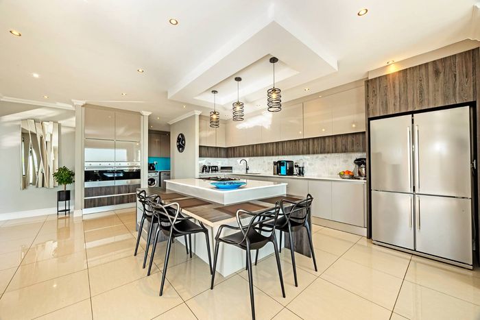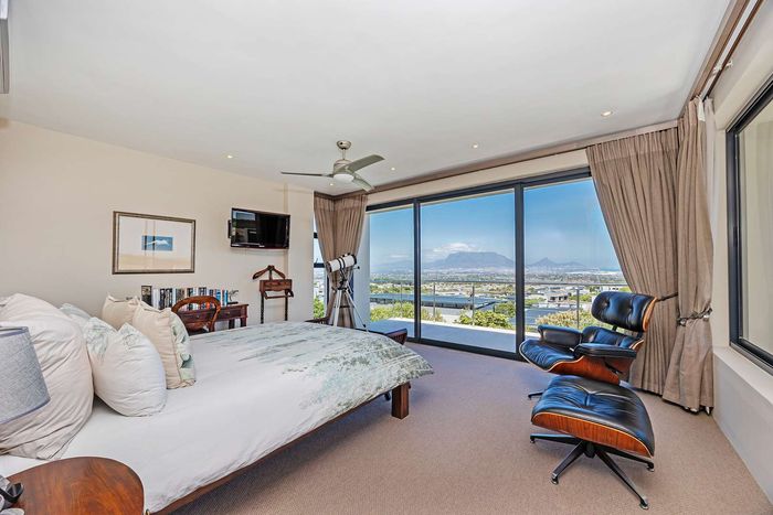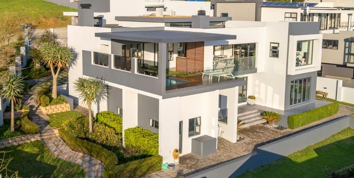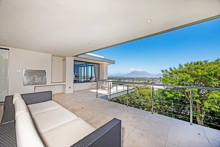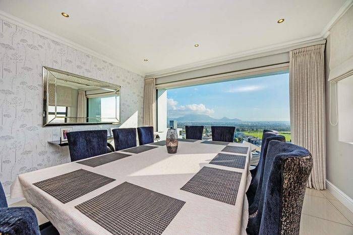 Entertainer's dream in Baronetcy Estate with panoramic Table Mountain and Cape Town views; bespoke chef's kitchen, heated pool and undercover braai. Five bedrooms and three garages.