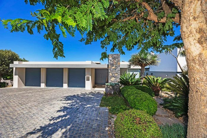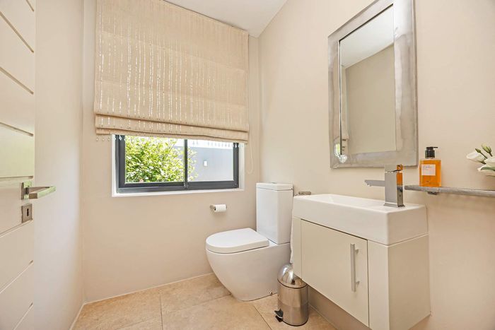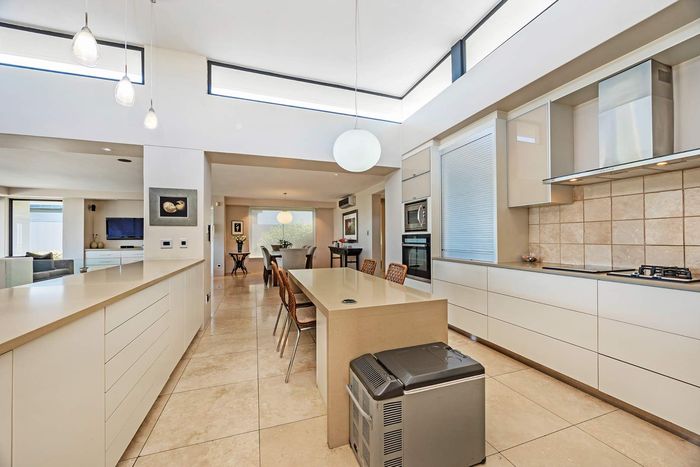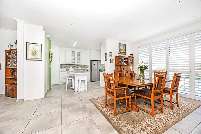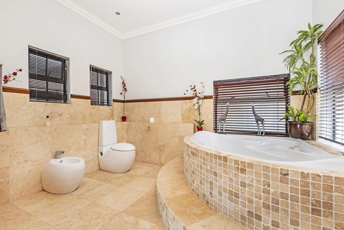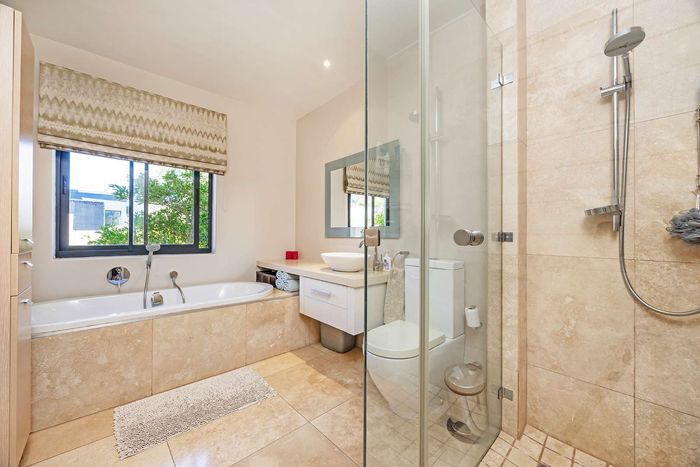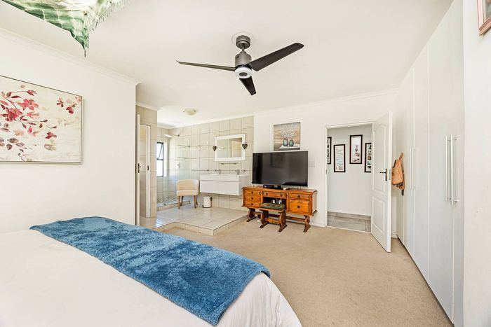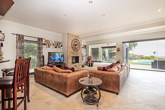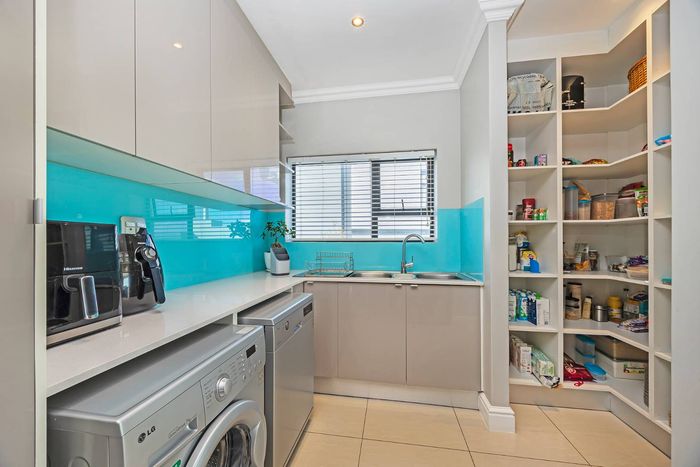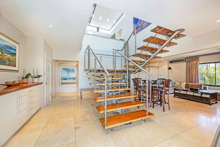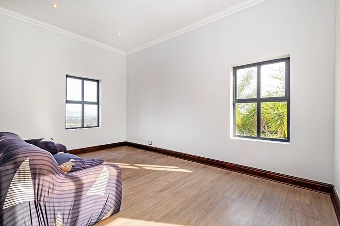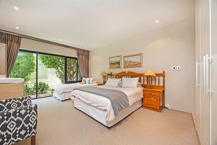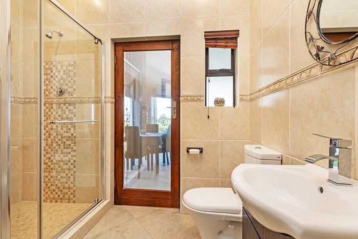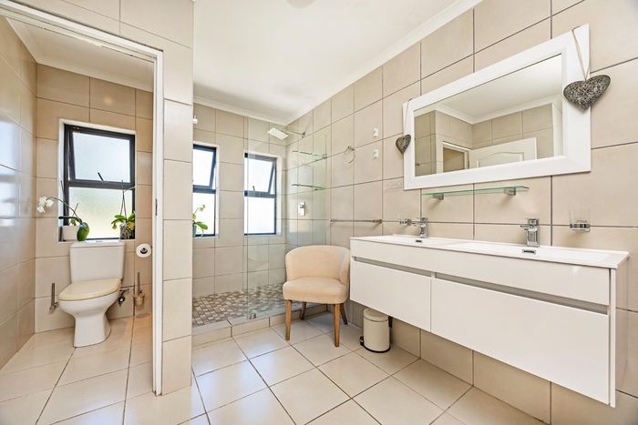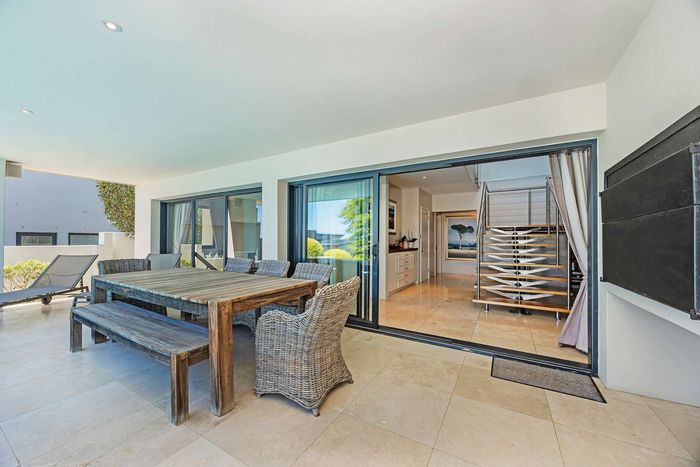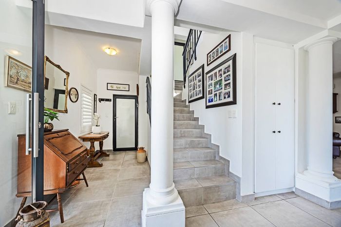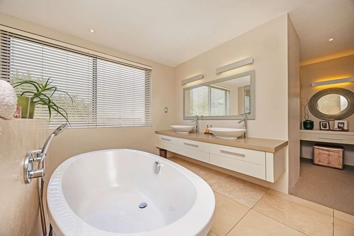 Entertain in a gated estate close to top schools, beaches and wine farms; private ground-floor guest suite, open living onto patio and borehole-fed gardens. 5 beds, 4 baths, double garage.