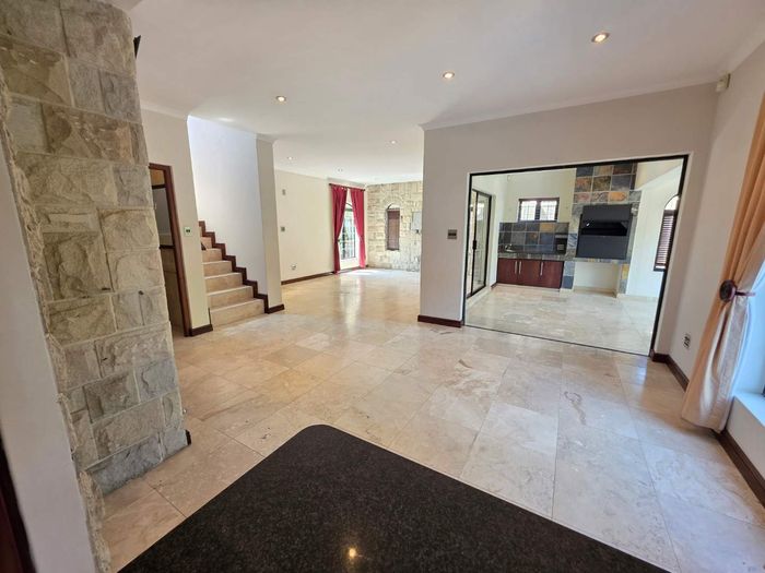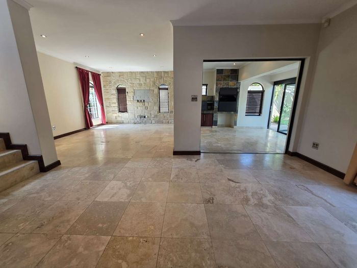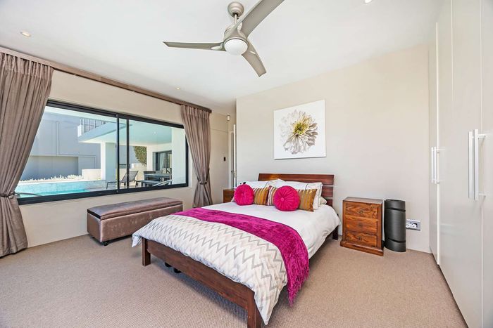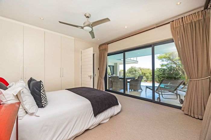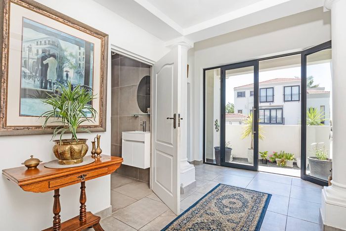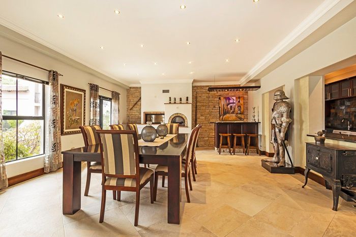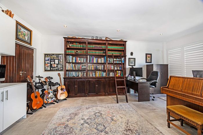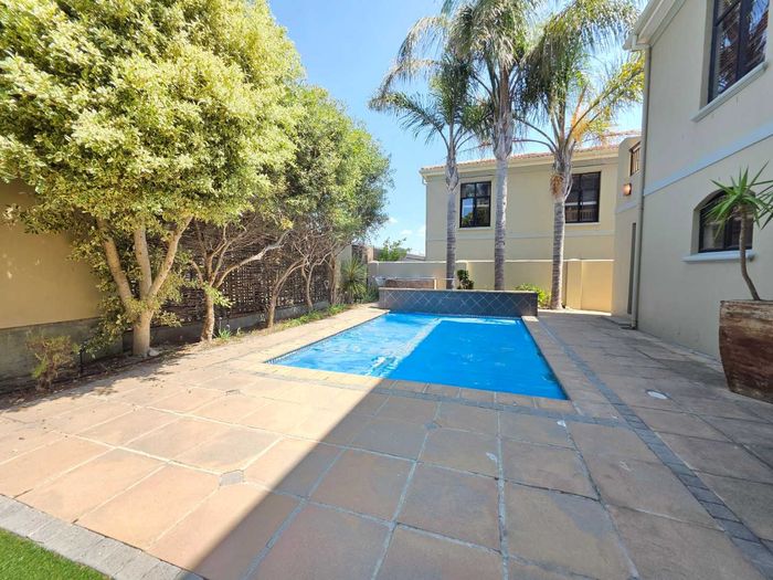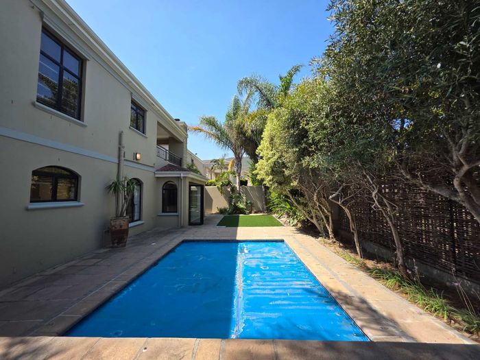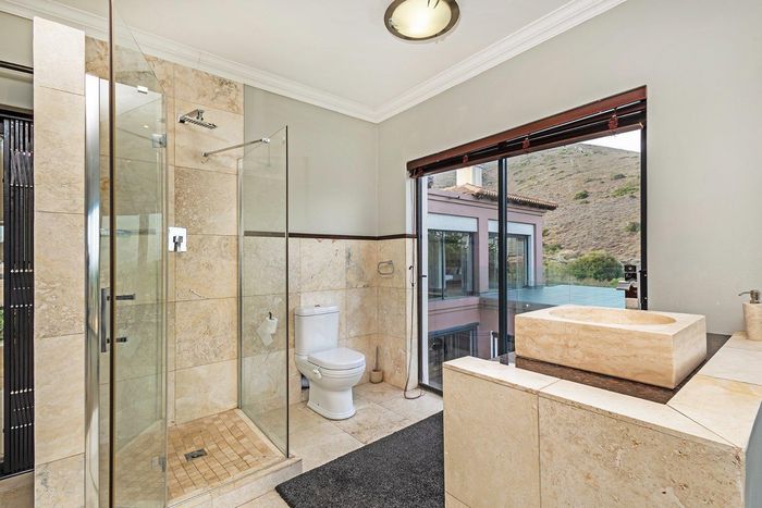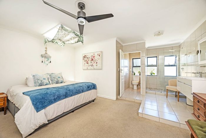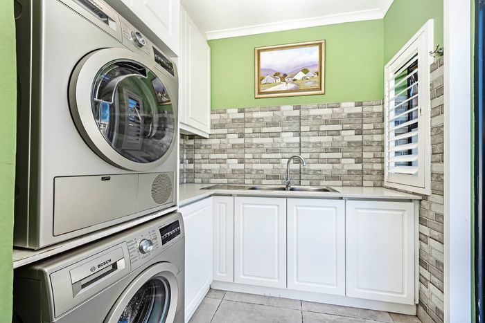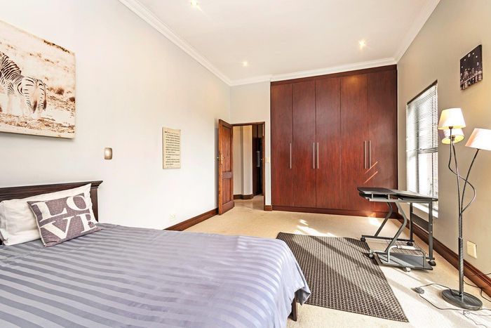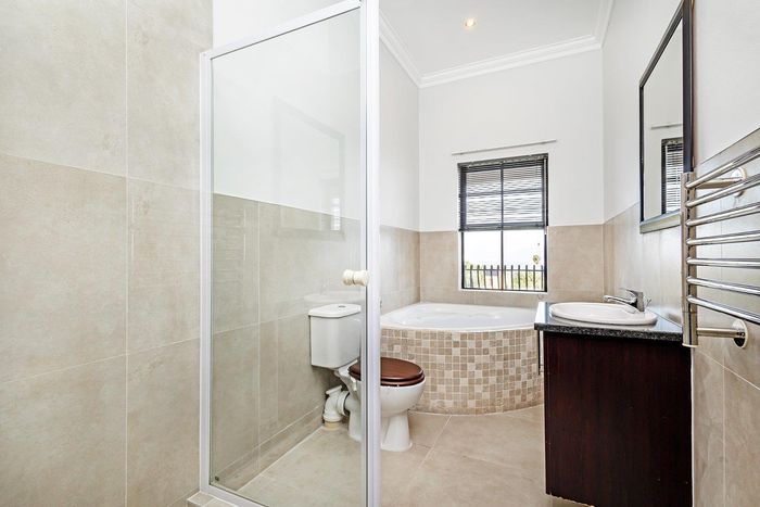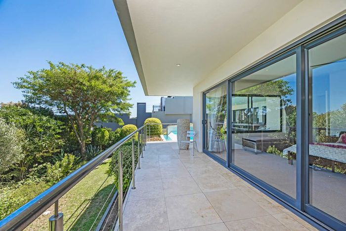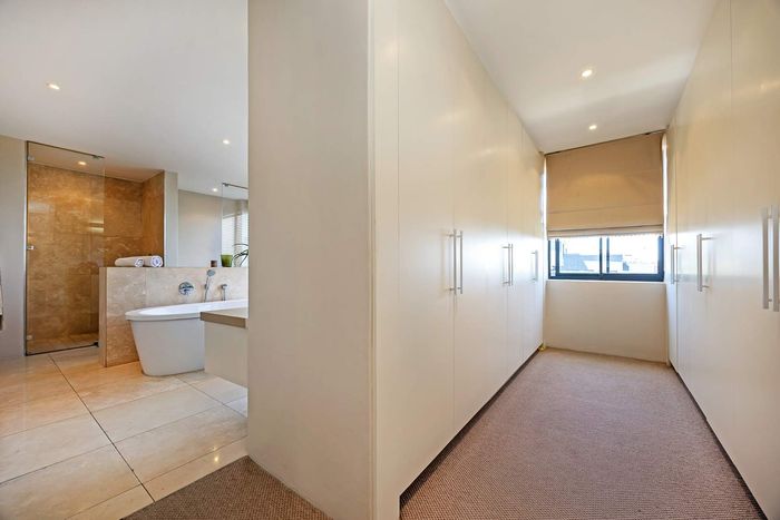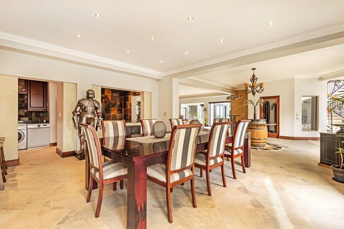 Entertain in a gated estate close to top schools, beaches and wine farms; private ground-floor guest suite, open living onto patio and borehole-fed gardens. 5 beds, 4 baths, double garage.