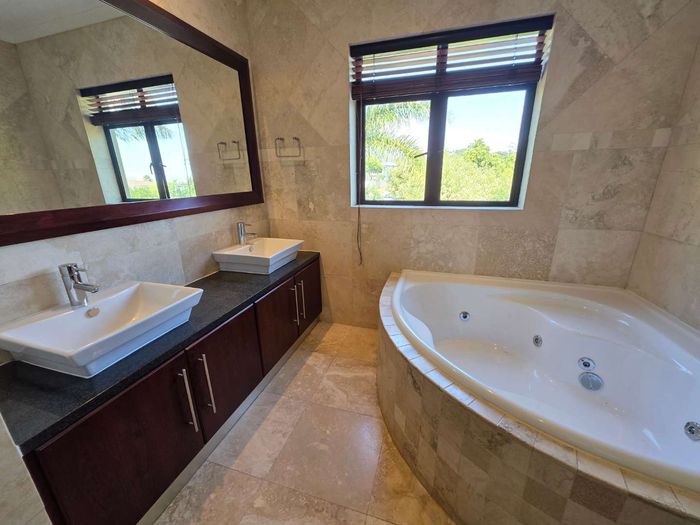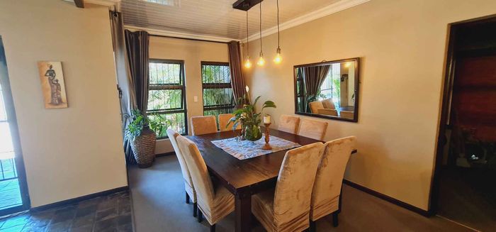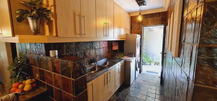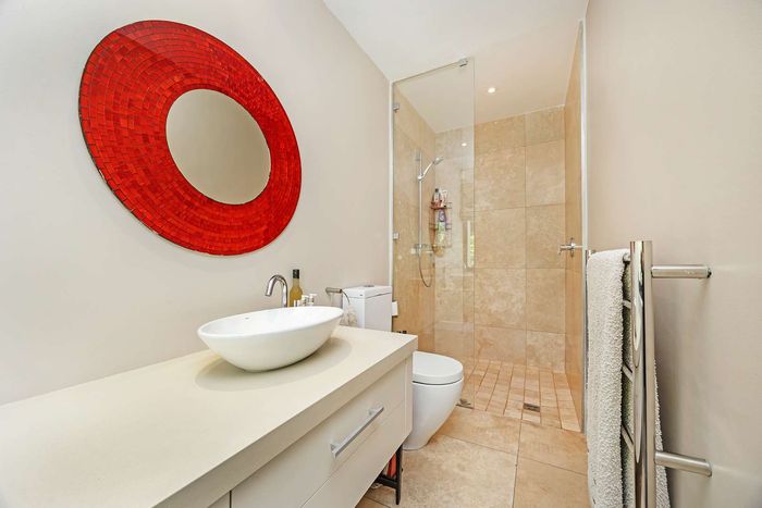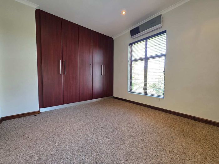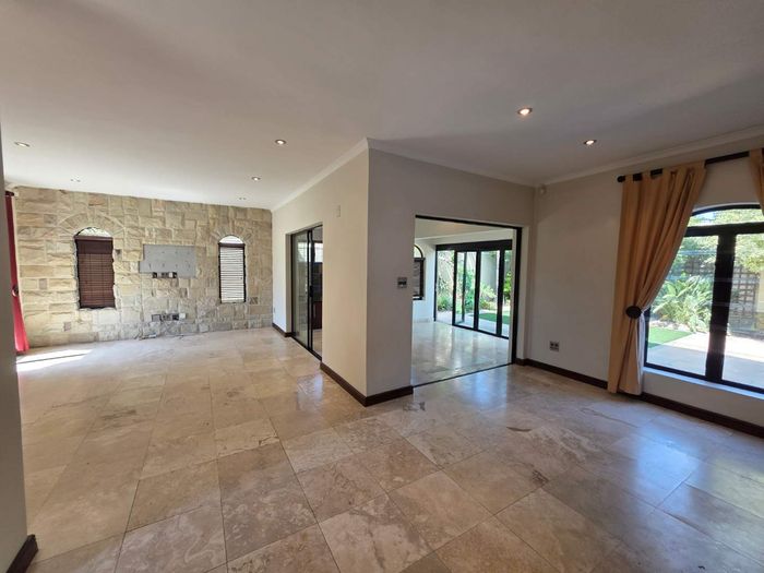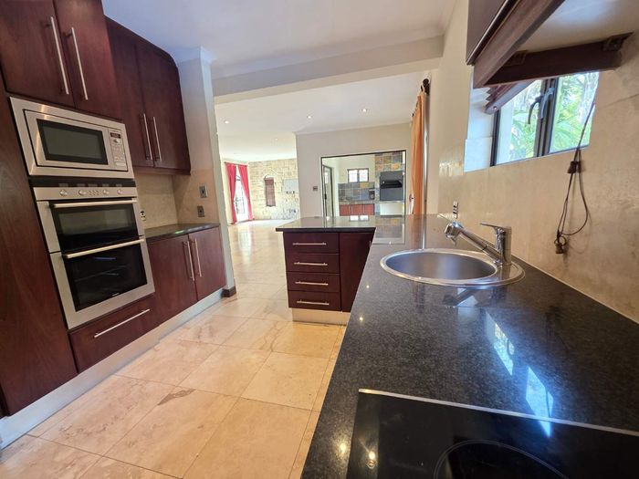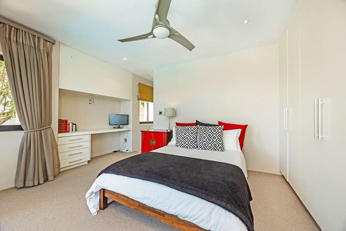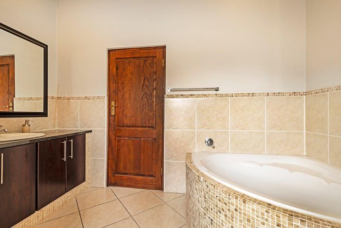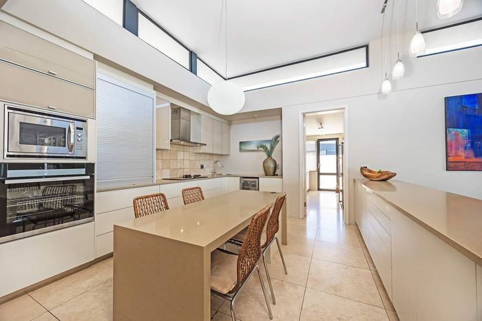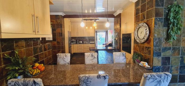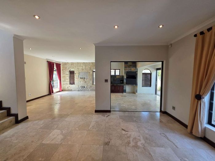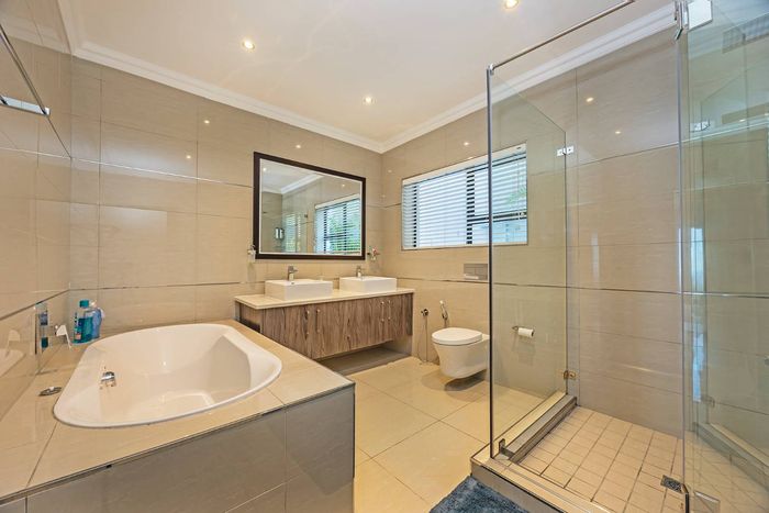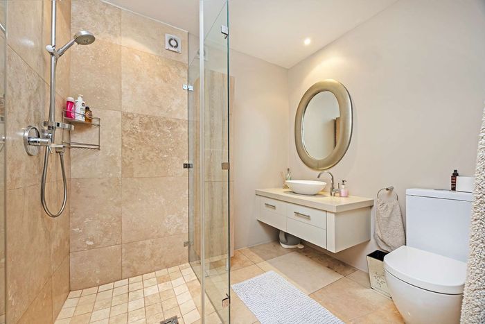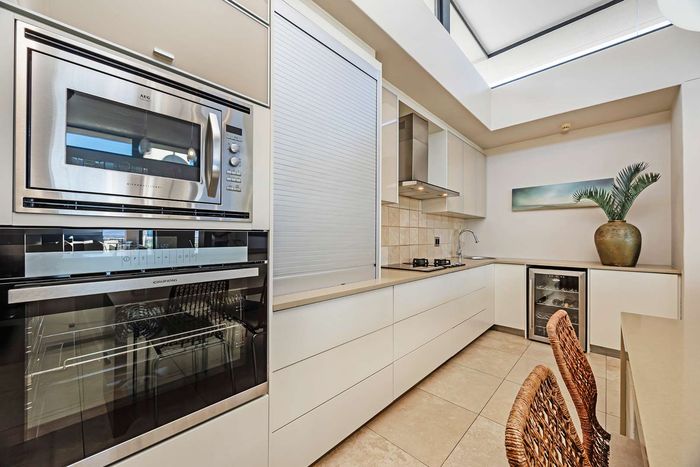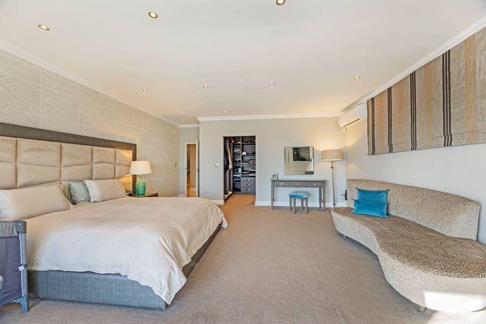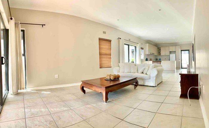 Entertain in a gated estate close to top schools, beaches and wine farms; private ground-floor guest suite, open living onto patio and borehole-fed gardens. 5 beds, 4 baths, double garage.