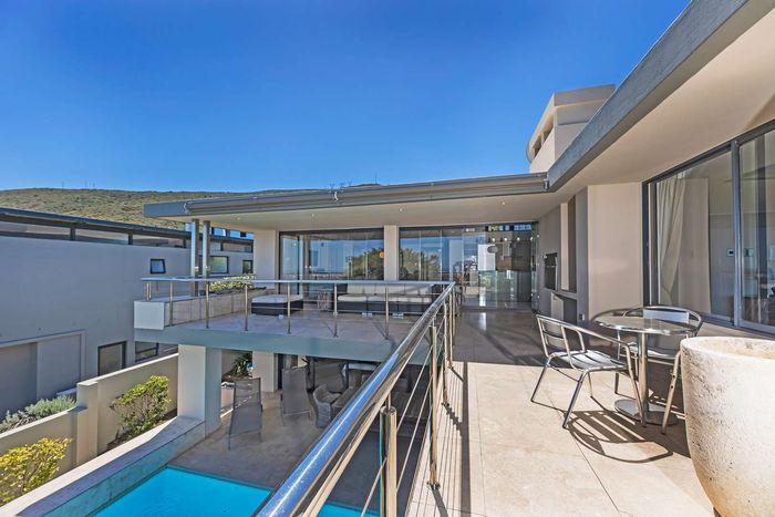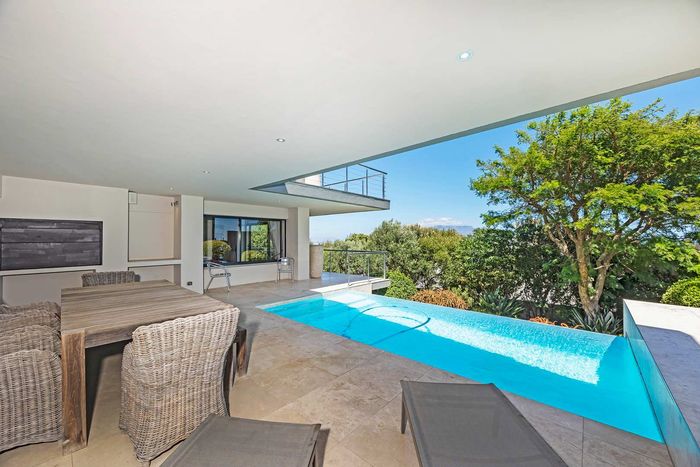 Resort-style entertaining in Baronetcy Security Estate with panoramic Table Mountain views, private pool and covered braai patio; chef’s kitchen, four en-suite bedrooms and three garages.