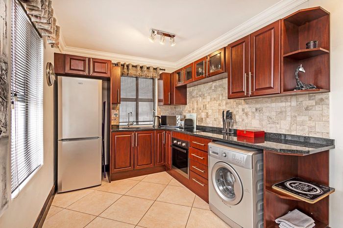 Enjoy relaxed indoor-outdoor living with private patio and communal garden in a secure, well-kept complex close to local shops — modern stone-top kitchen, two bedrooms, one bathroom and secure parking bay.