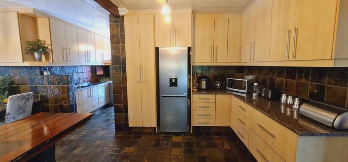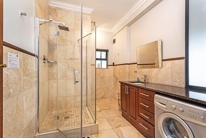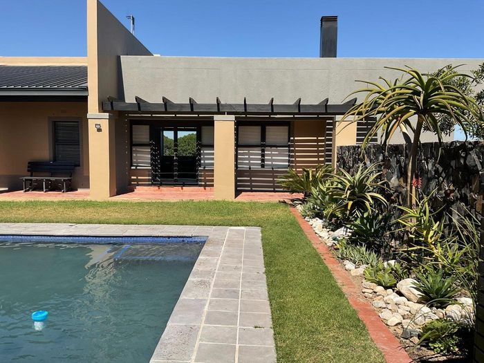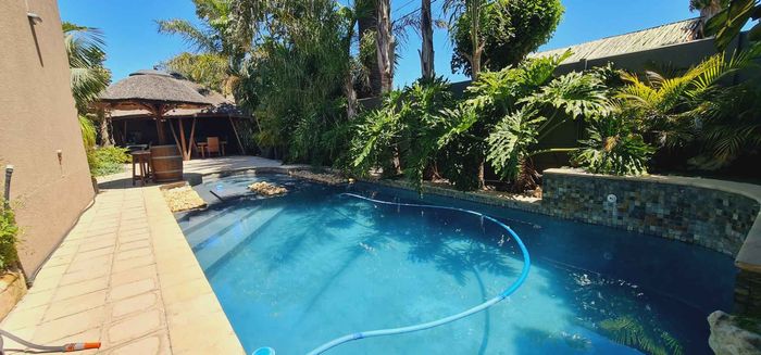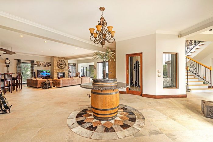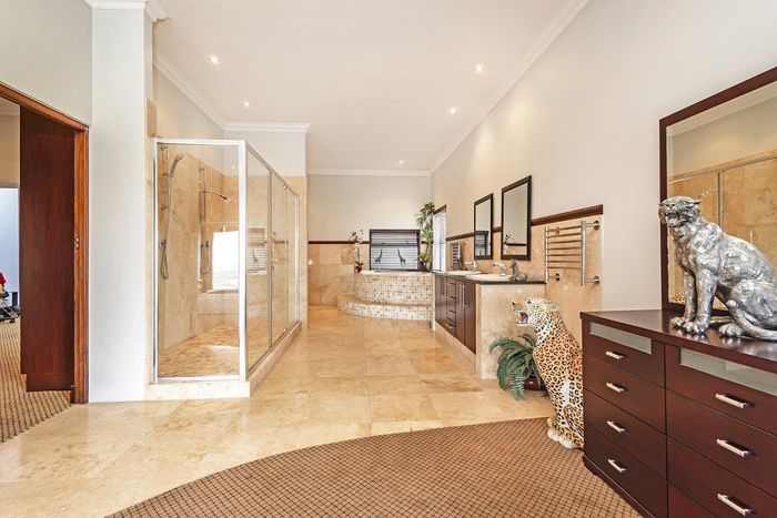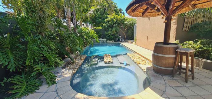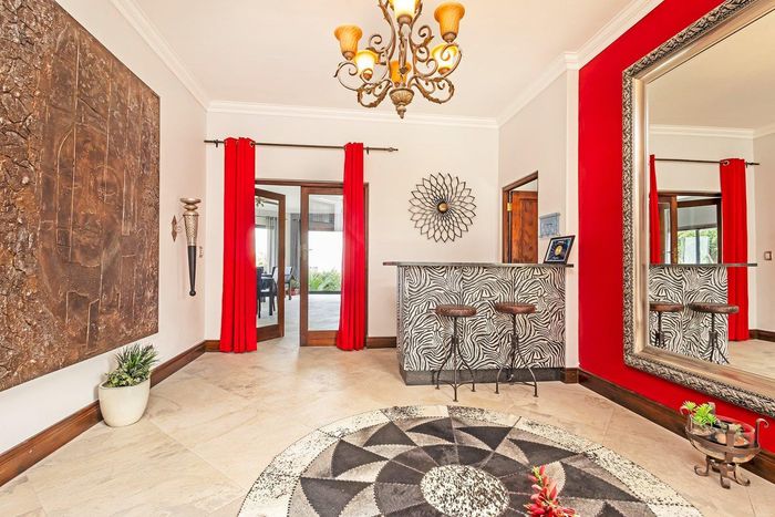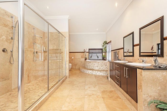 Entertainer's sanctuary in Baronetcy Estate, with wind-sheltered courtyard, pool, indoor braai and jacuzzi; includes self-contained apartment, five bedrooms, five bathrooms and four garages.