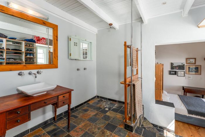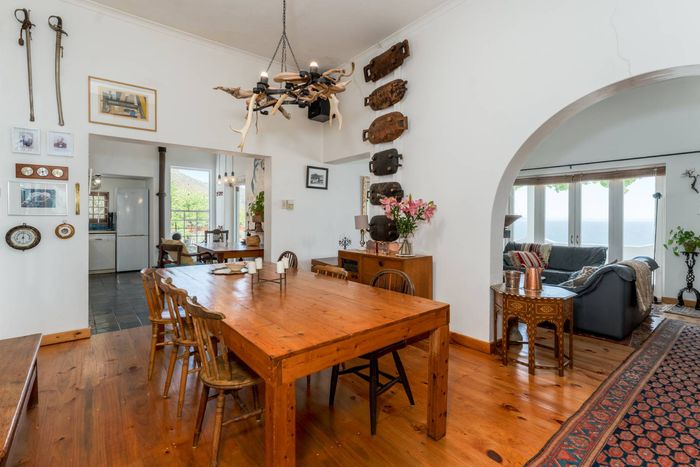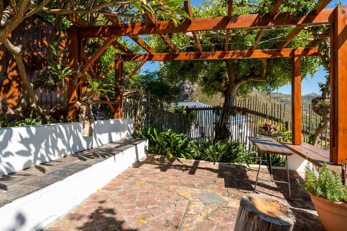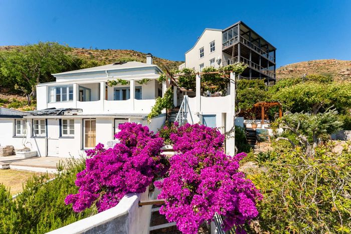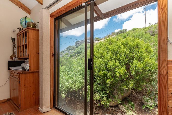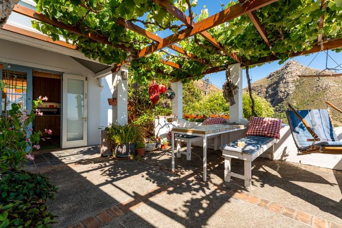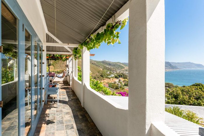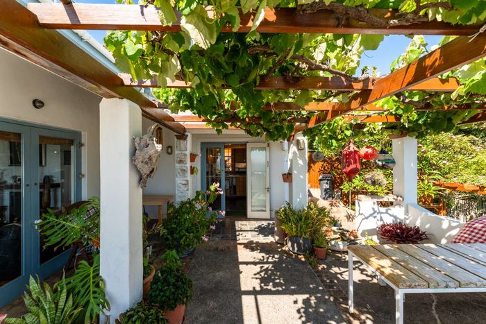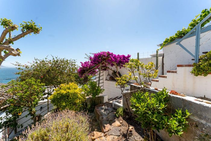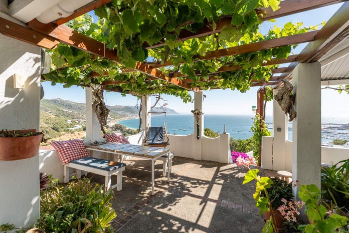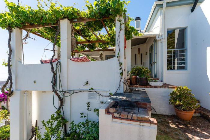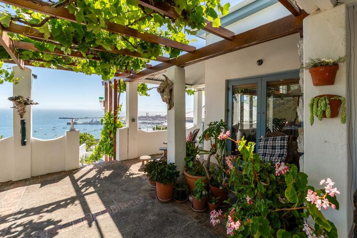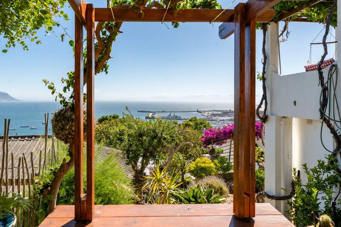 Seaside retreat above Simon’s Town, ideal for relaxed coastal living with uninterrupted Simon’s Bay views, grape-covered pergola patio and loft studio — classic two-bedroom, two-bath cottage.