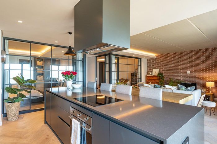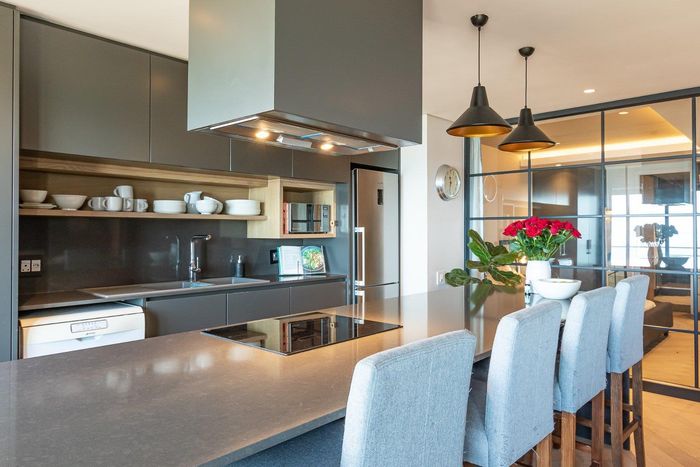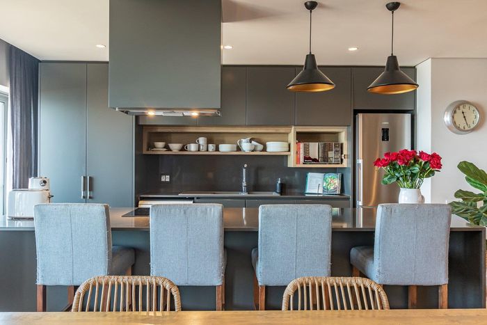 Coastal luxury living in Harbour Bay, Simon's Town with panoramic sea views, sail-profile design and a gourmet modern kitchen — two bedrooms, two bathrooms and two secure parking bays.