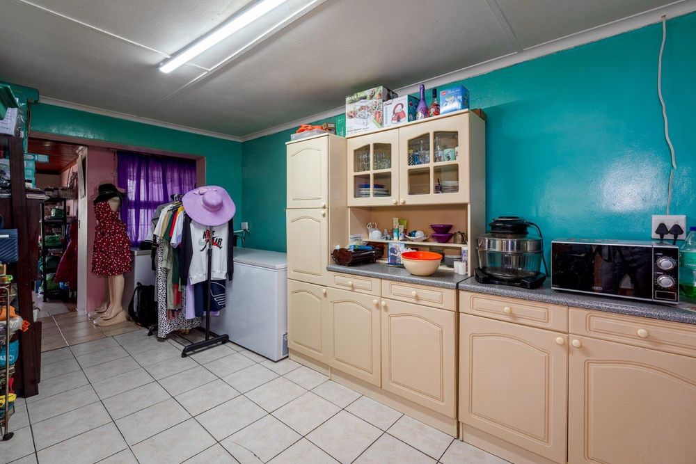 This three-bedroom semi-detached property is conveniently located behind Eisleben Primary School and offers great potential for transformation according to your preferences. The lounge features aluminum windows and a unique nottypine ceiling, with a sliding door that leads to the garage where two vehicles can be parked.