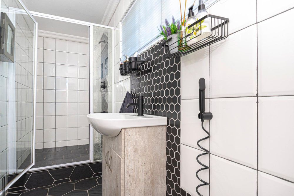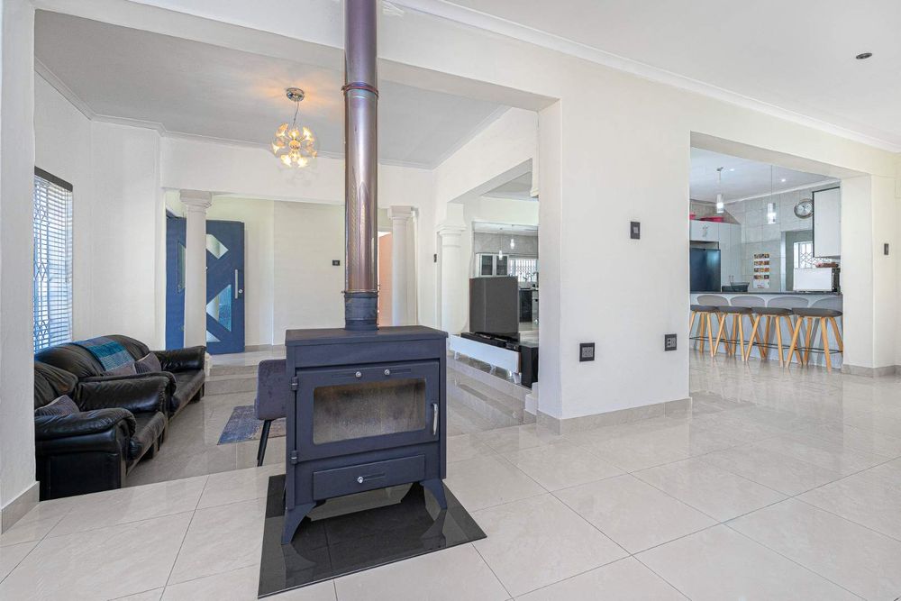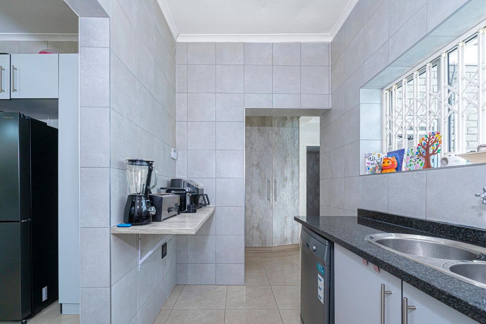 The fully tiled and fully functional modern kitchen is the centerpiece of this home. It caters for all your needs and offers a 6 diner breakfast area and space for a double door fridge and a prep bowl. The scullery has plumbing for one appliance, double sink and ample work counter space.