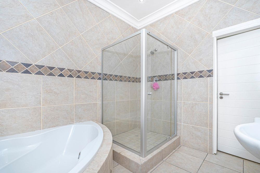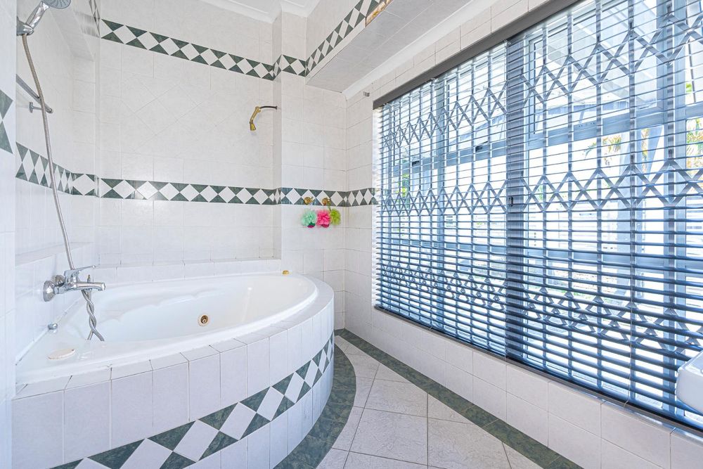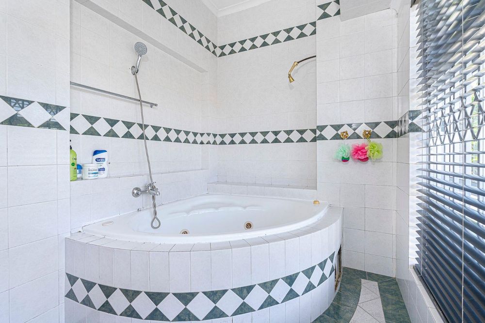 The other 2 bedrooms are spacious, tiled with built in cupboards blinds and trellis. Two of the bathrooms have spa baths, showers and is fully tiled.