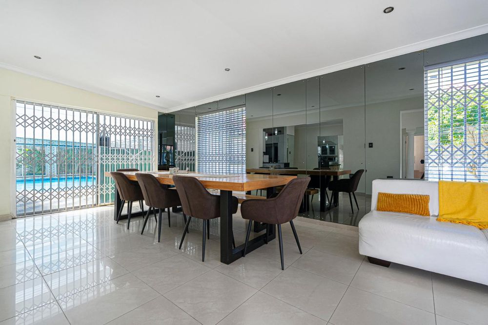 The dining area accommodates comfortably a 10 seater with sliding doors leading to the pool and entertainment area.