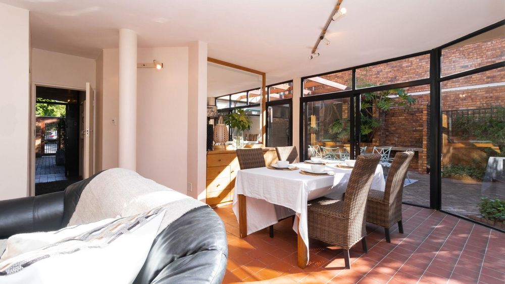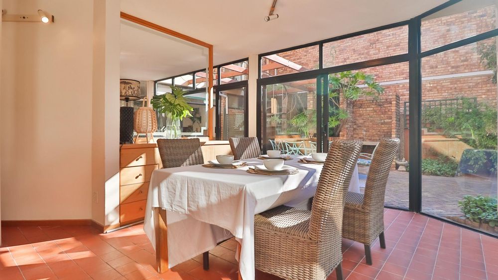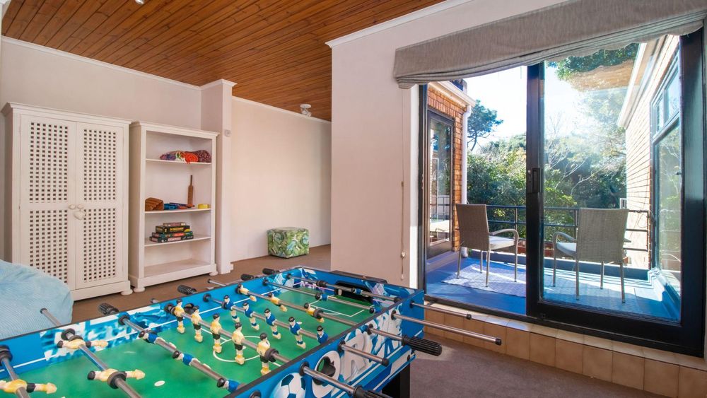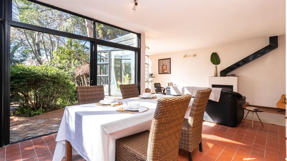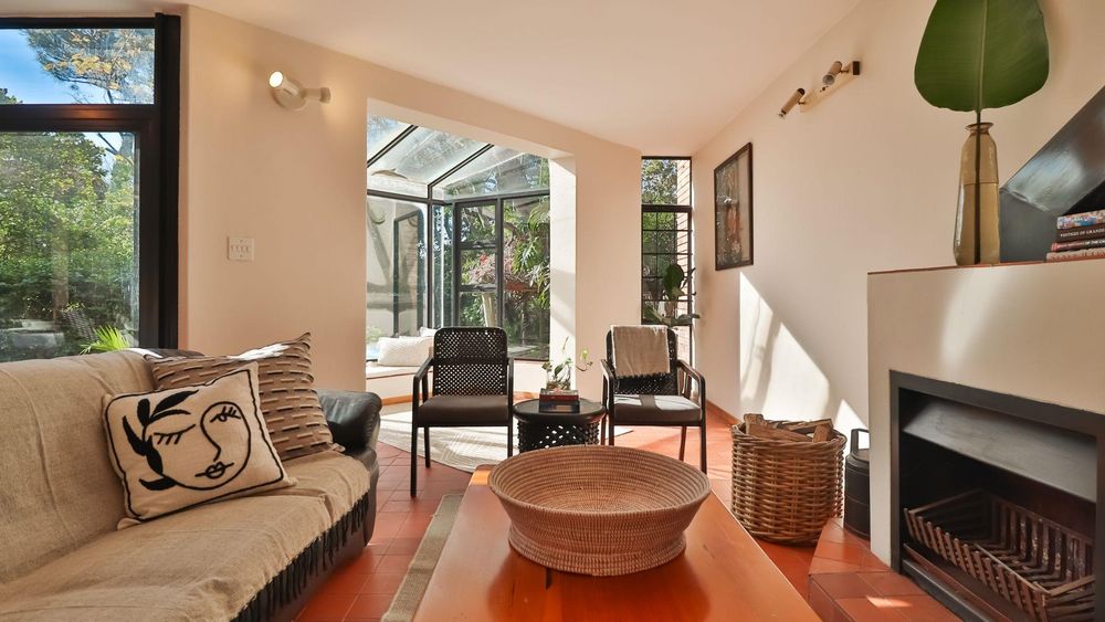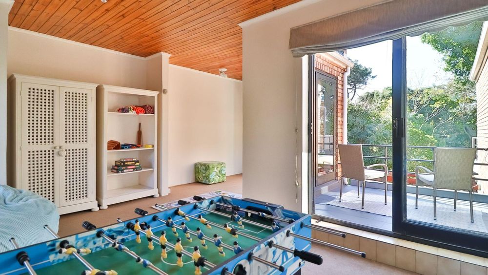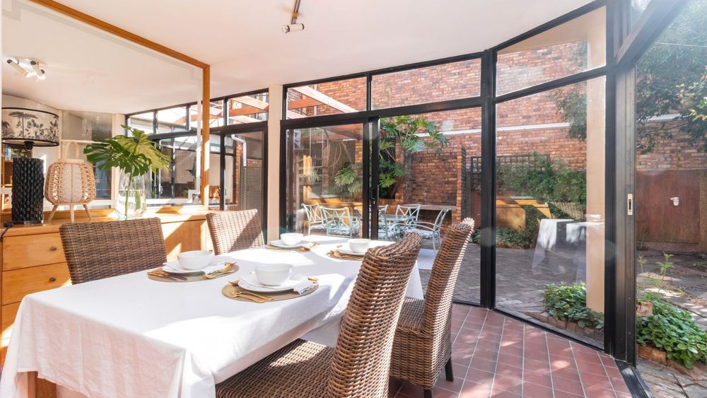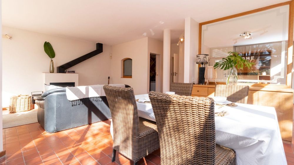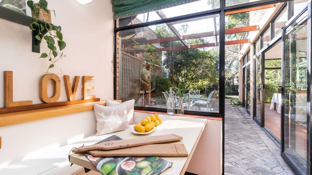 Downstairs, the home invites togetherness with an inviting lounge, dining room, and TV room, all bathed in natural light and opening through large sliding doors to the lush garden with mature trees, a perfect space for children to play and families to gather. A cosy fireplace in the lounge adds warmth and charm, making winter evenings extra special.