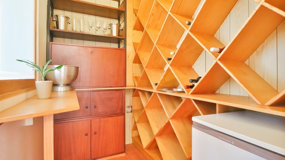 Additional features include a wine cellar/storage room, a guest loo, and a well-equipped kitchen, complemented by domestic quarters for added convenience. Parking is secure and practical, with a single garage and space for two more vehicles behind a gated entrance.