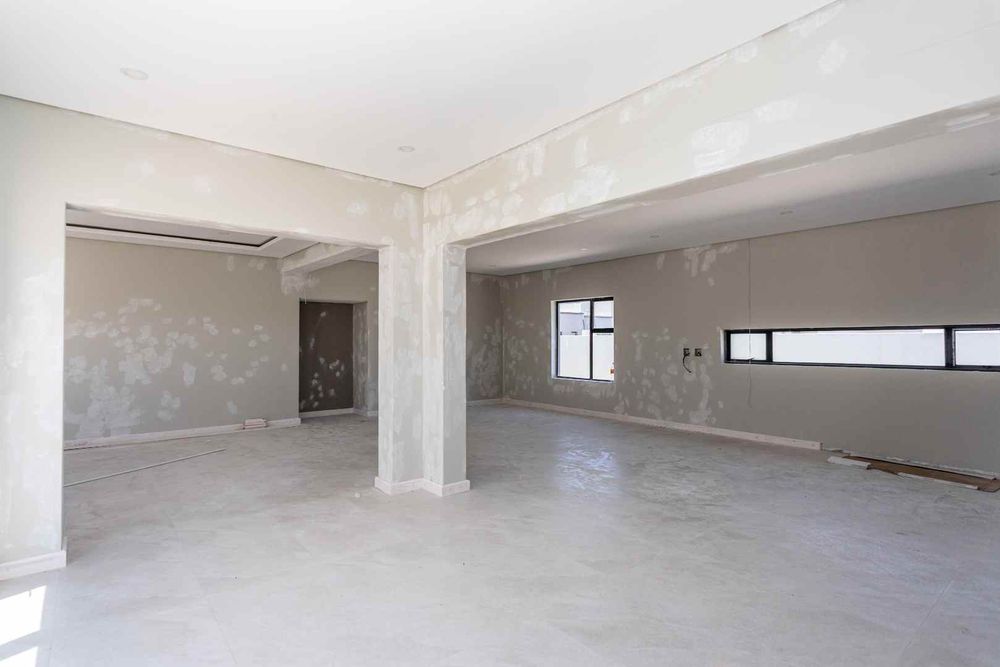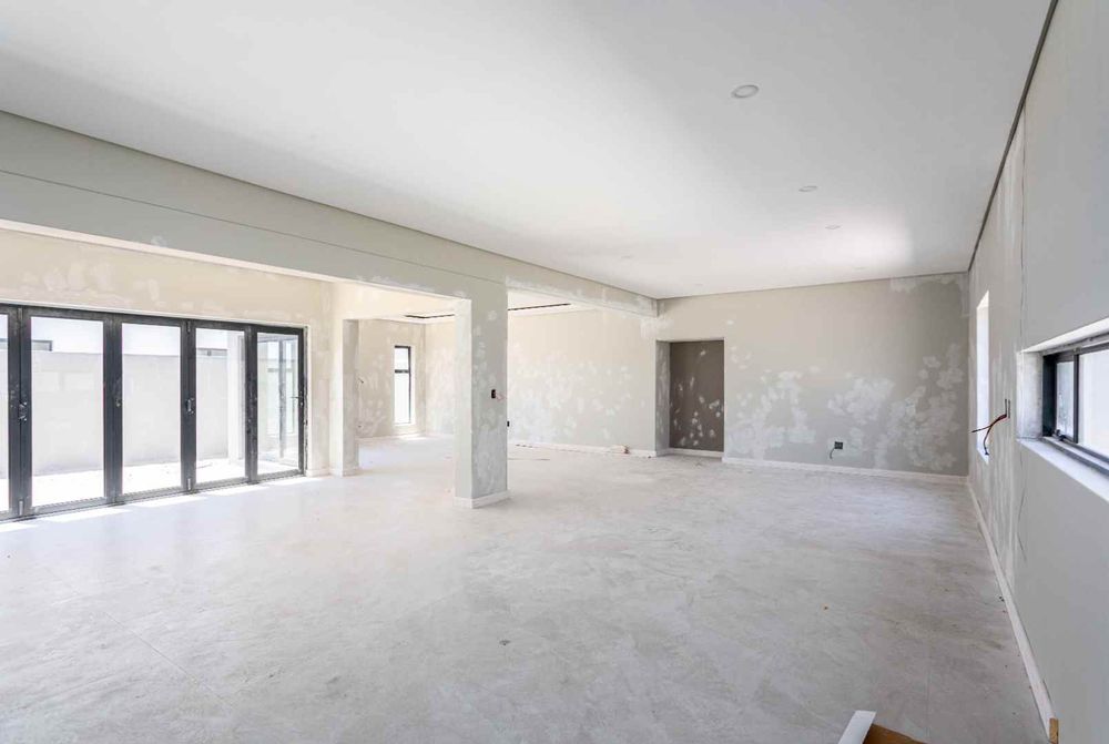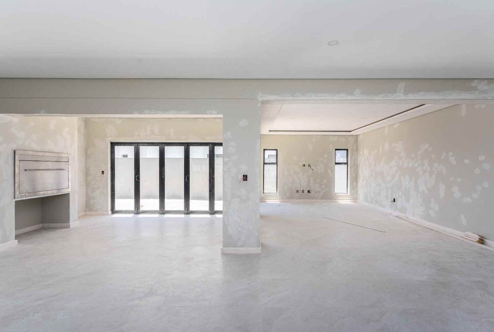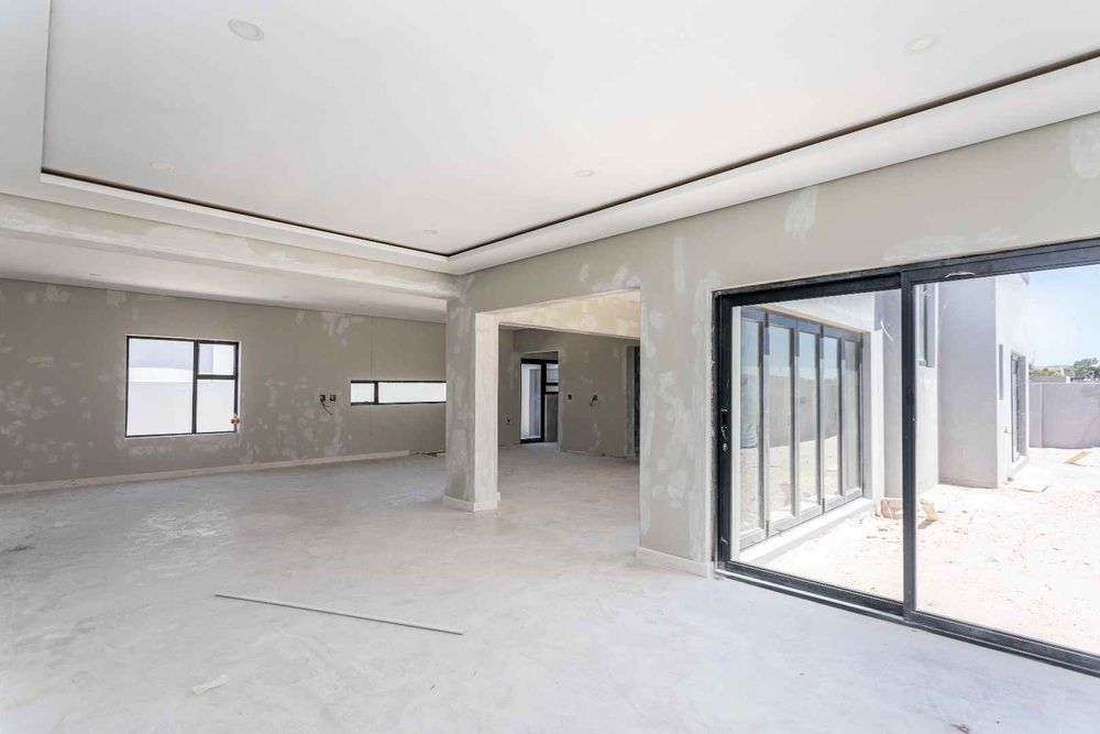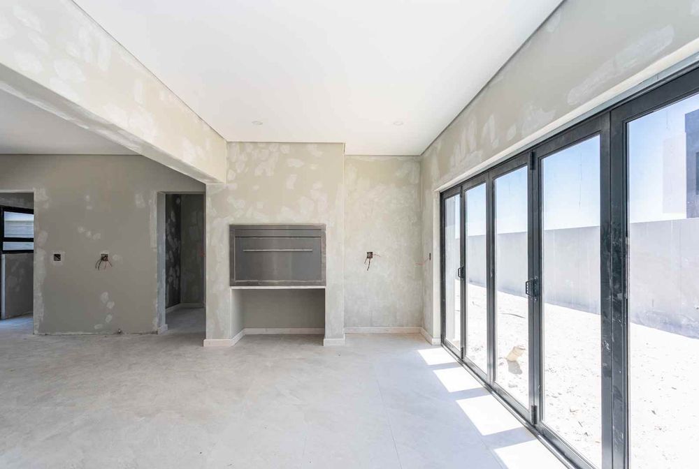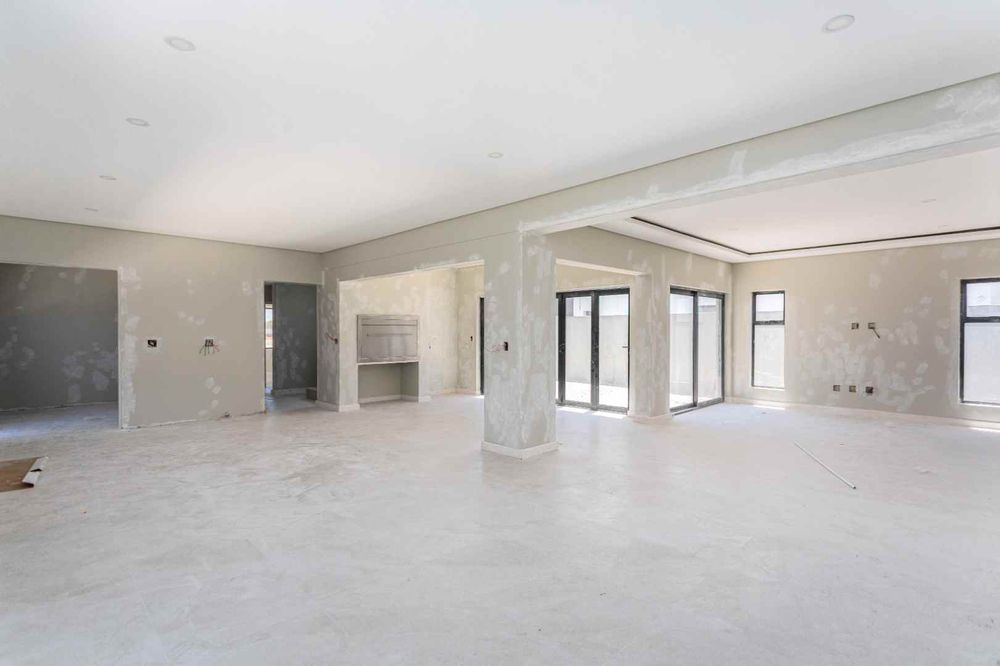The home boasts four spacious bedrooms and four elegant bathrooms, each crafted with comfort and sophistication in mind. The expansive open-plan lounge and designer kitchen flow effortlessly into the integrated built-in braai area, creating a seamless indoor entertainment space ideal for hosting in style all year round. Natural light and clean modern lines enhance the sense of space and exclusivity throughout.