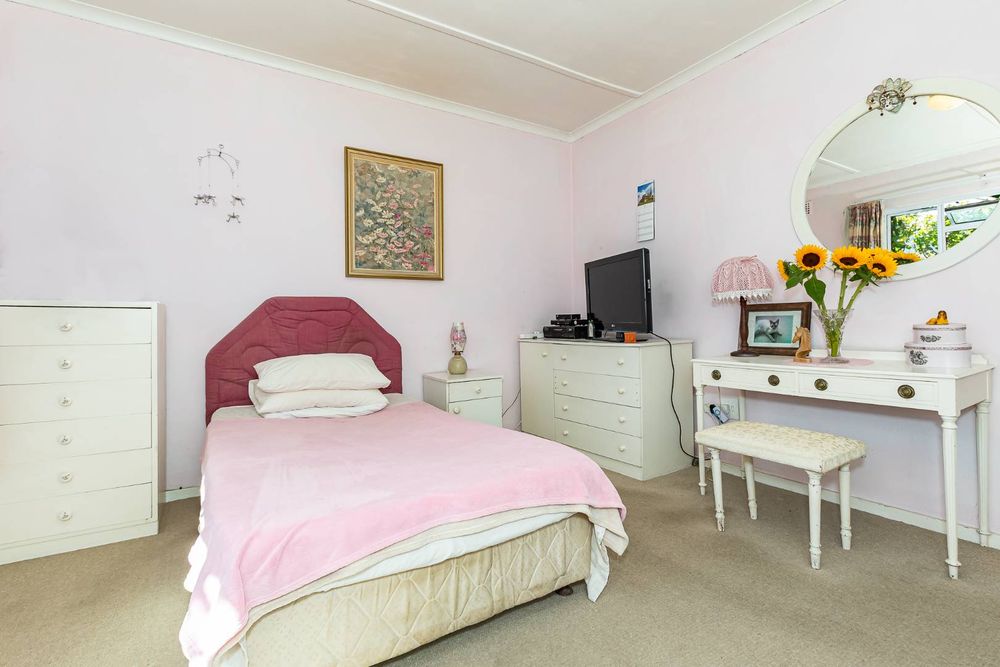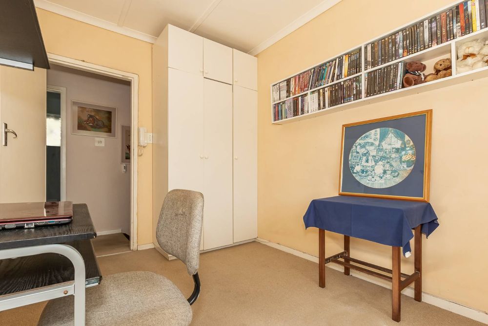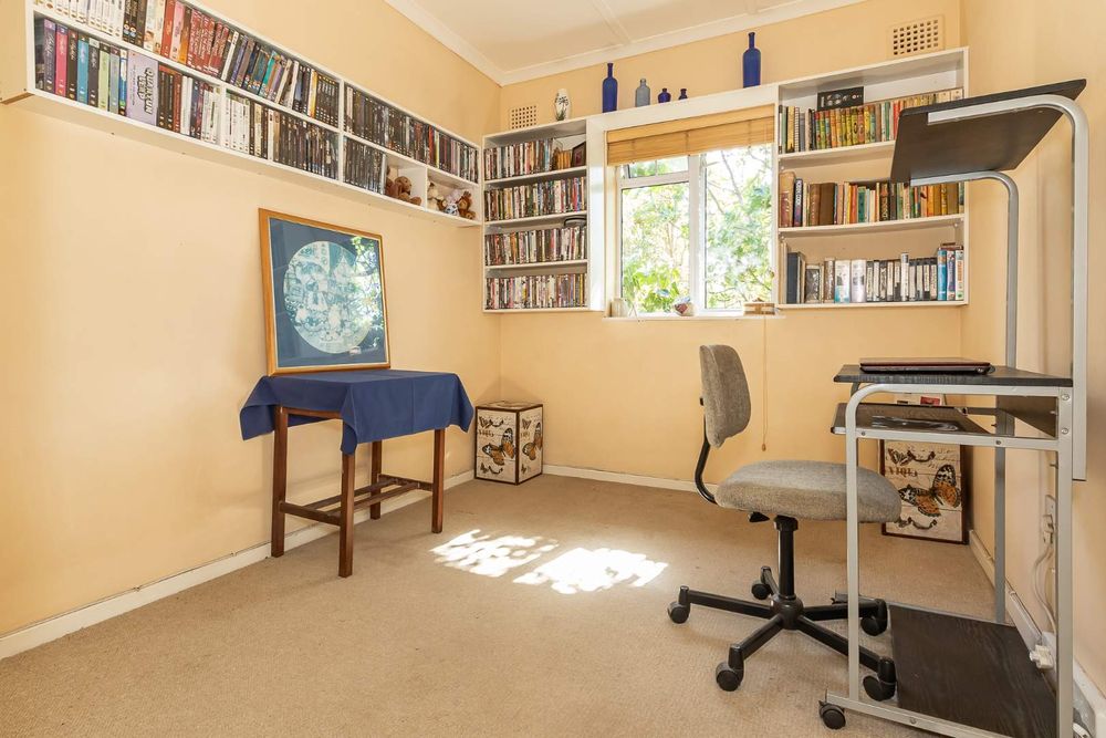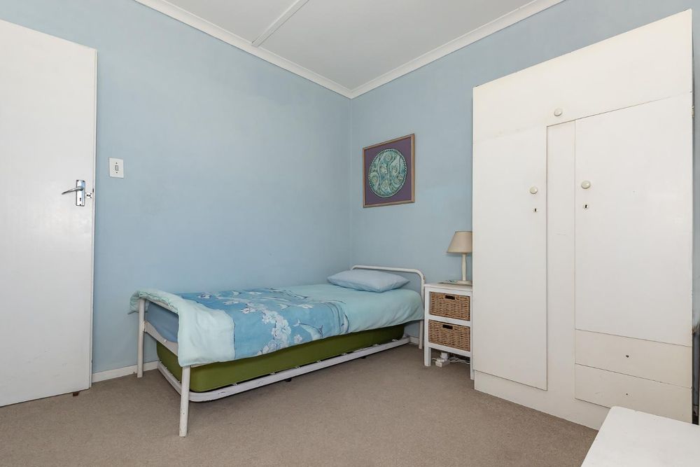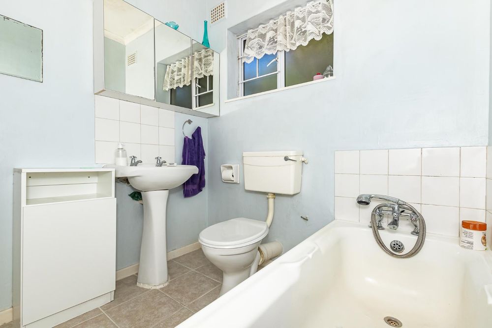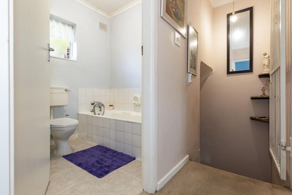 Upstairs, you’ll find three generous bedrooms. Two of the bedrooms come with built-in cupboards, while the third has free-standing cupboards. The family bathroom includes a bath, basin, and toilet.
