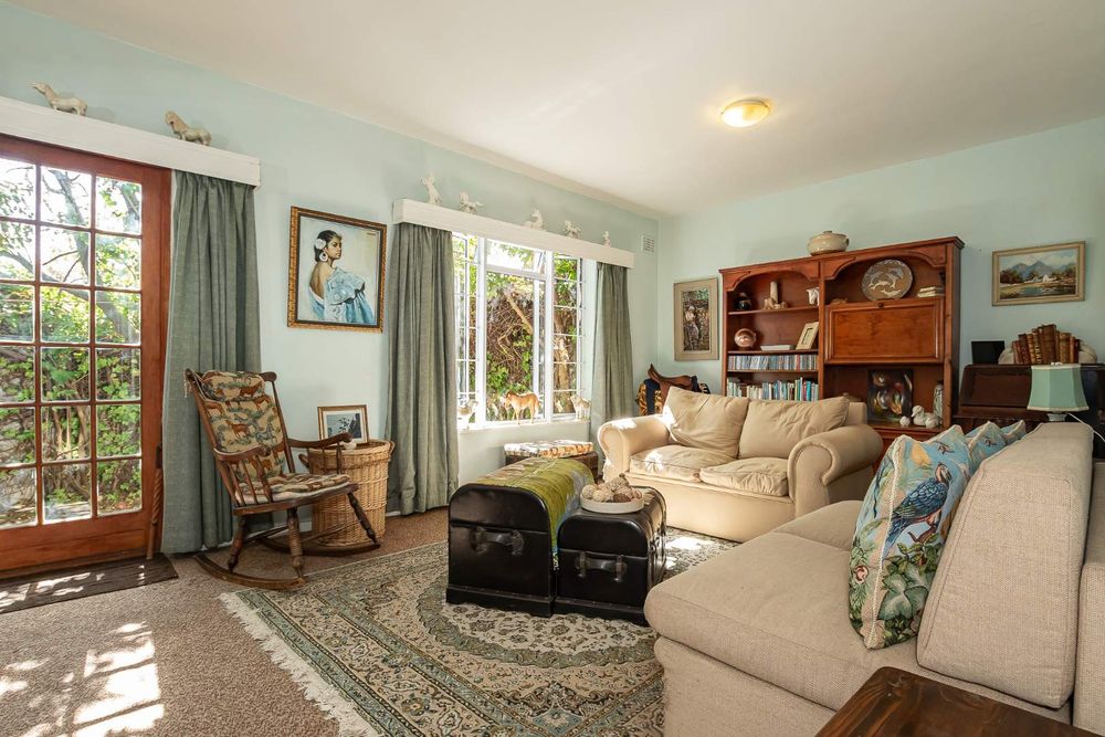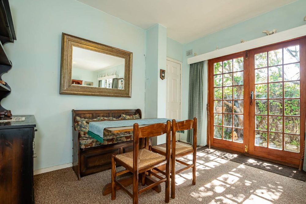 The open-plan lounge, dining, and kitchen area create an inviting atmosphere, with double doors leading to a front courtyard. The courtyard is surrounded by established trees, offering both privacy and tranquility.