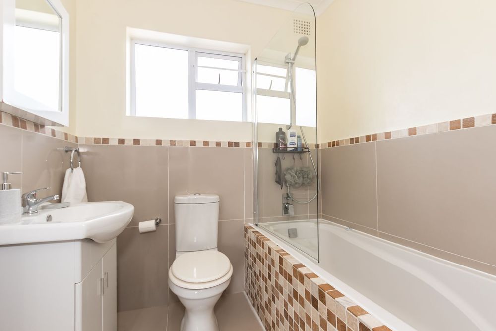 Upstairs you will find three well-sized bedrooms, all with built-in cupboards, along with a family bathroom fitted with a bath, overhead shower, toilet, and basin.