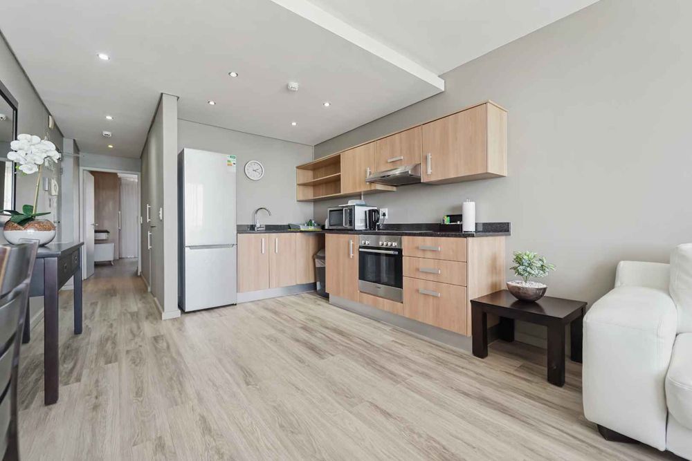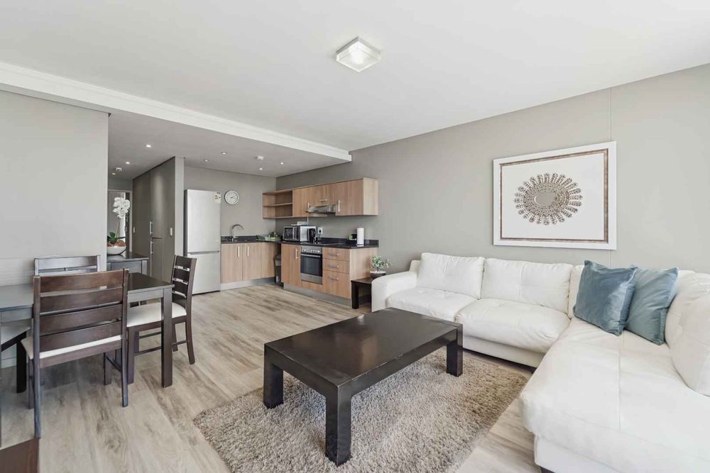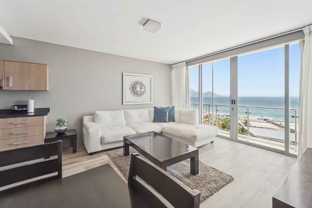 This apartment has uninterrupted views of Table Mountain, Robben Island and endless beaches.