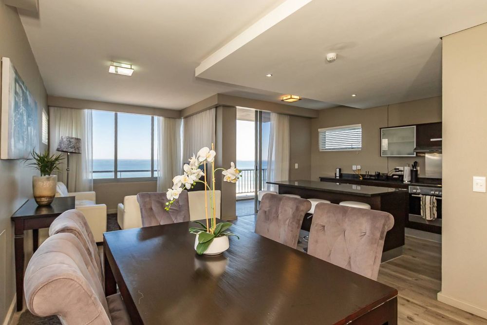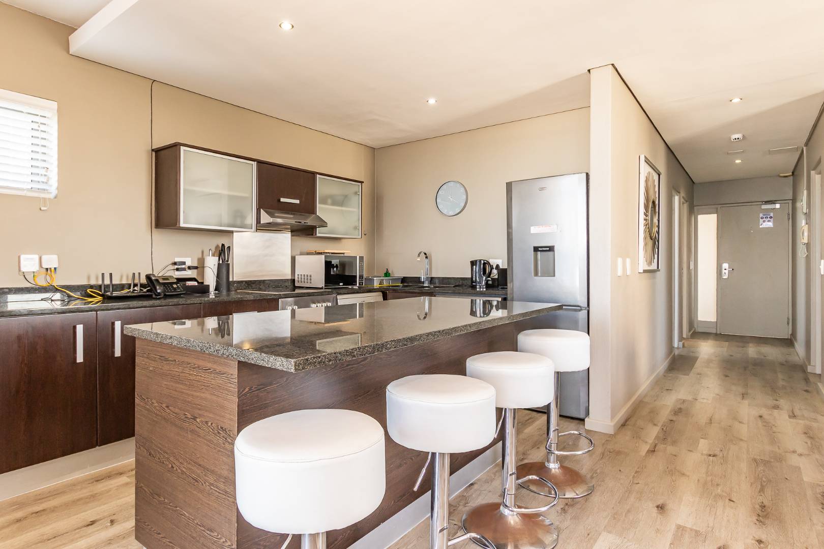An open-plan kitchen, dining, and lounge area flow seamlessly onto a spacious balcony, creating the perfect setting for sundowners and legendary sunsets.