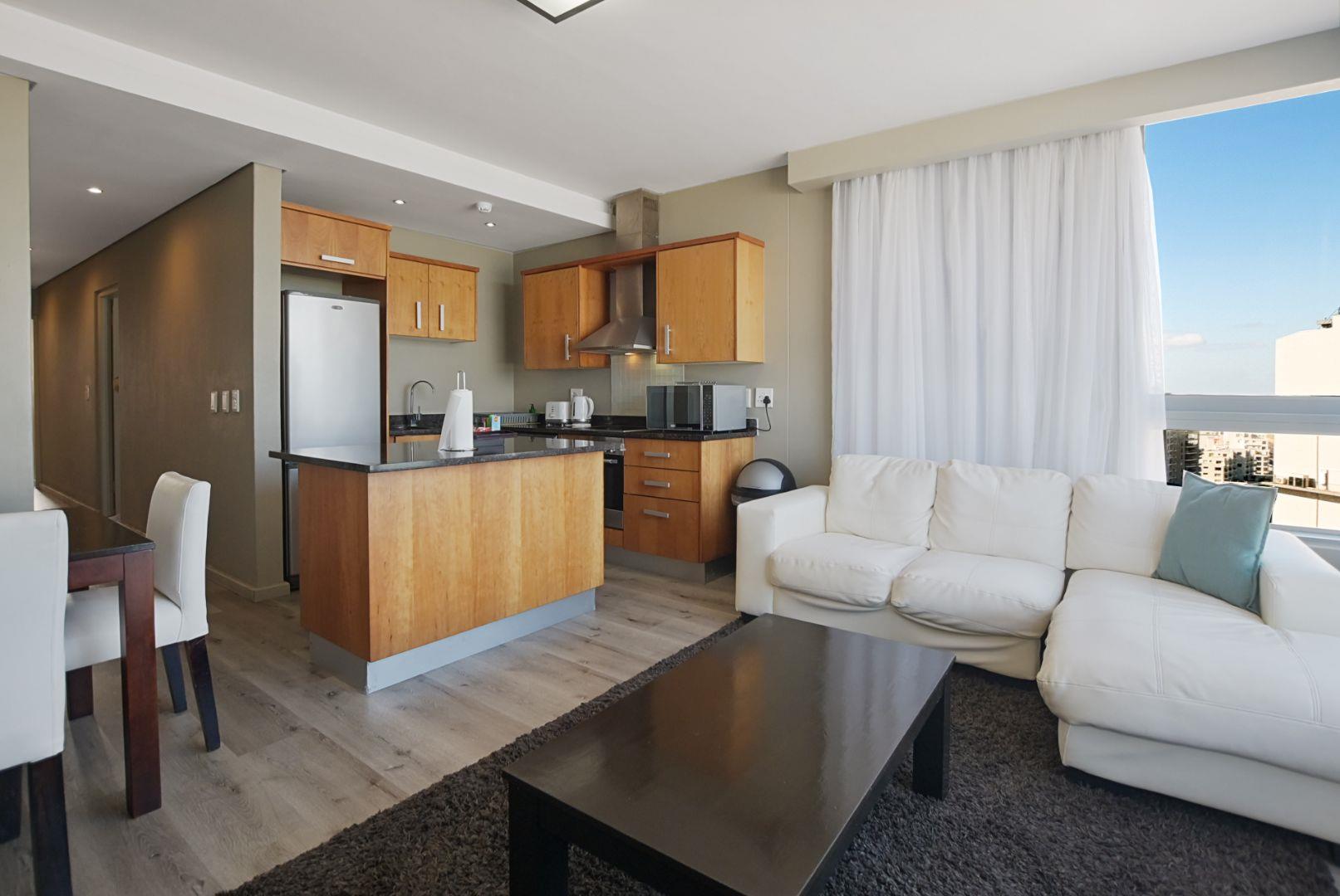 The open-plan kitchen and lounge flow effortlessly, perfect for sunset dinners or lazy weekends with the ocean as your backdrop. In trendy Blouberg, you’re literally above it all – high living, low maintenance, endless blue.