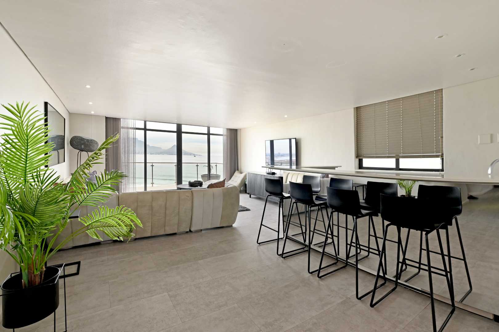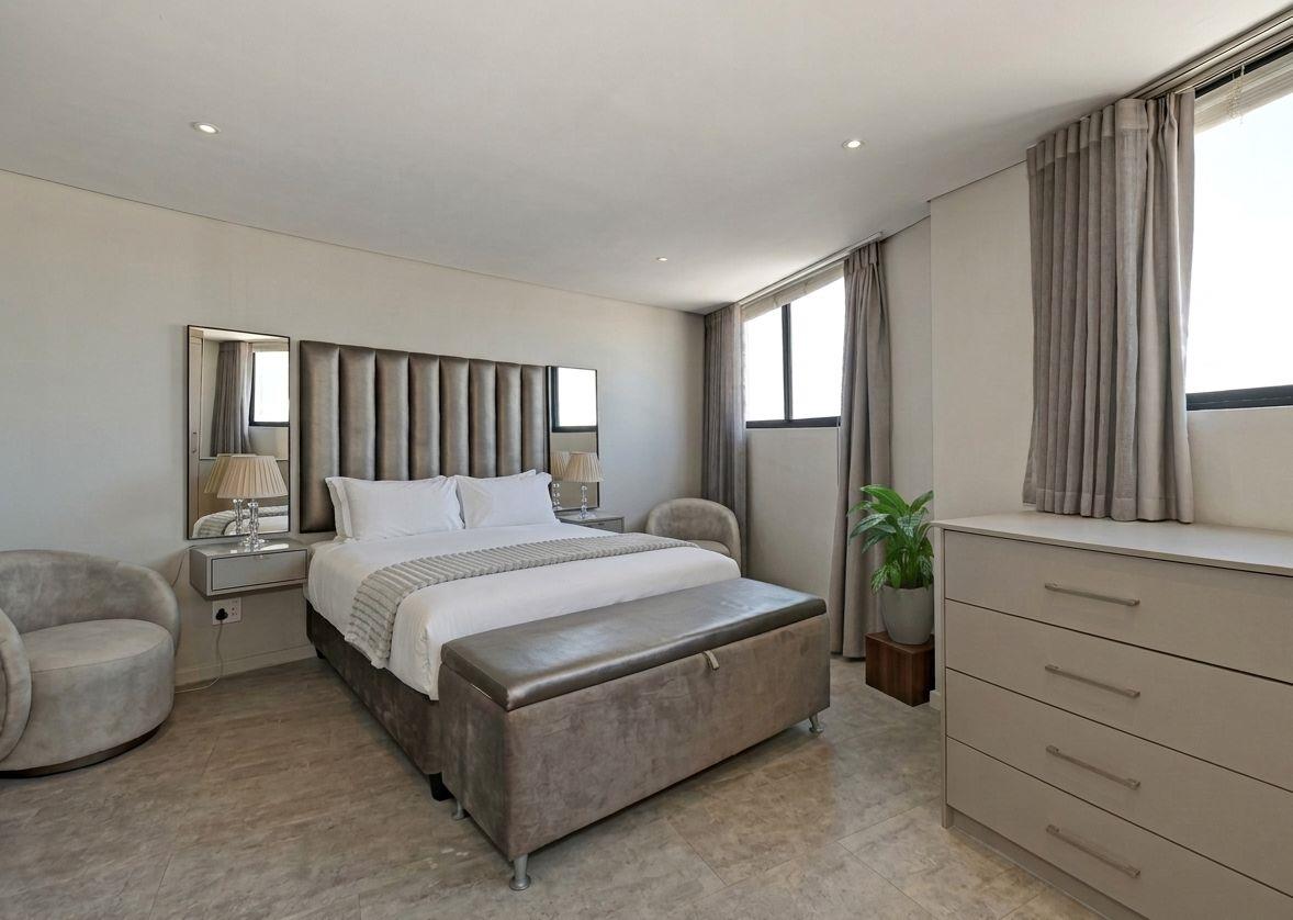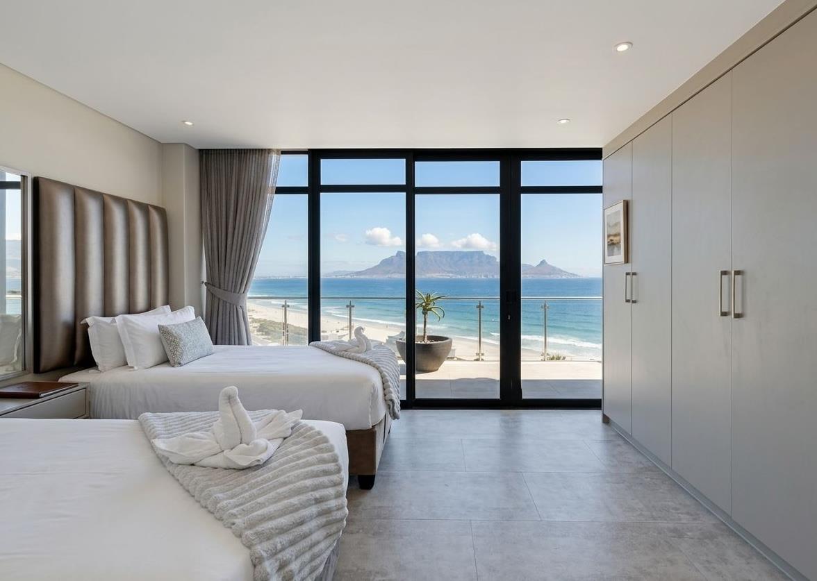 Occupying a full top floor on the Blouberg beachfront, this four-bedroom Penthouse delivers unmatched privacy, space, and uninterrupted views of Table Mountain, Robben Island, and the Atlantic Ocean.