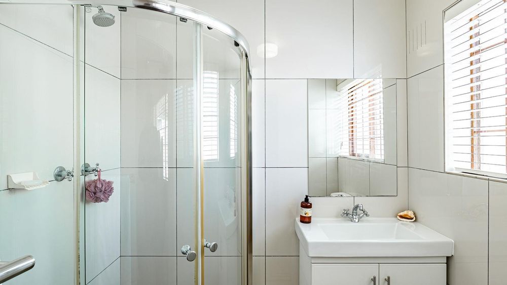 The front entrance opens into a spacious, tiled open-plan lounge and dining room which leads out through double doors to a wind sheltered, private and sunny back patio with surrounding flower beds.