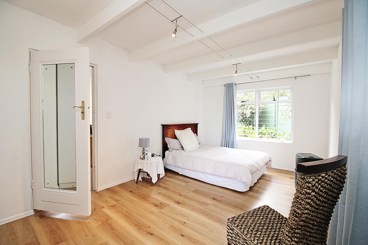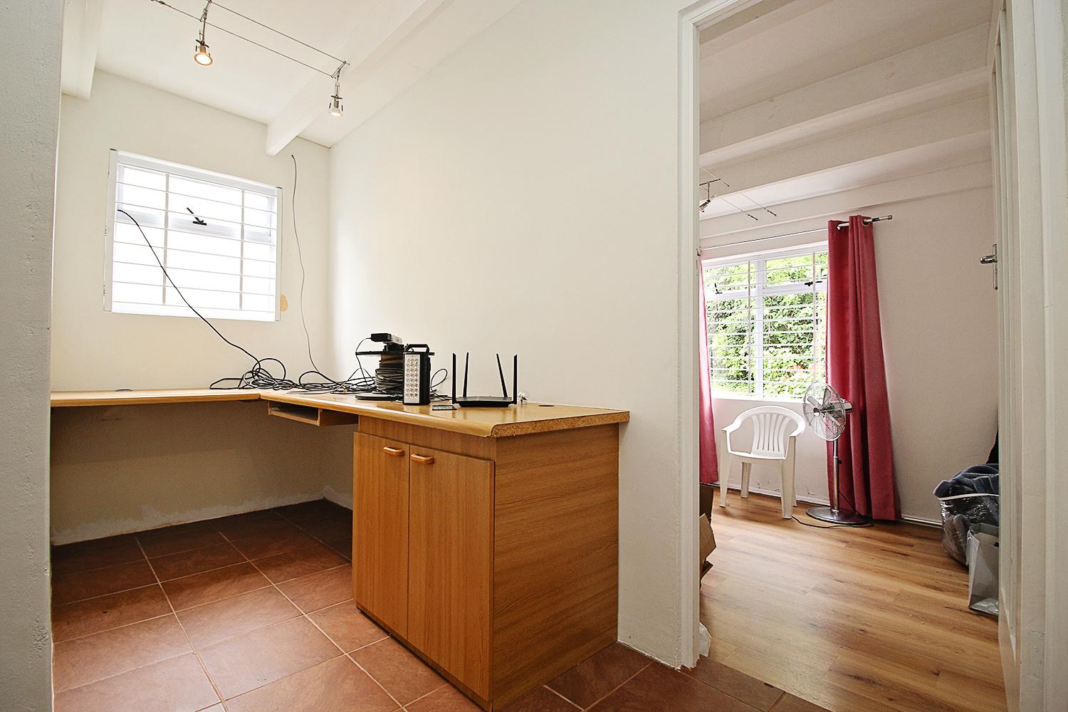 The cottage features two generously sized bedrooms, each bathed in natural light, with stylish vinyl flooring and ample cupboard space to keep your living environment neat and organized. Adjacent to the bedrooms is an open-plan study, complete with a built-in desk, providing an ideal workspace for remote work or personal projects.