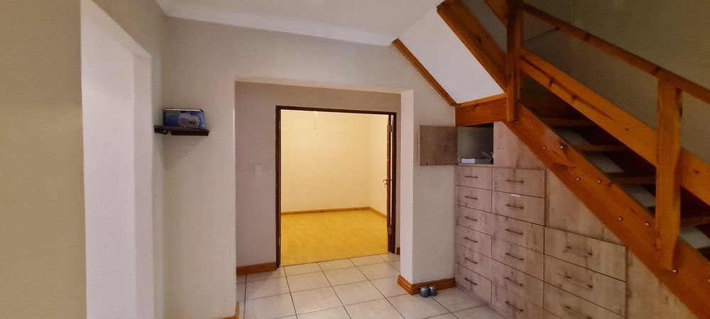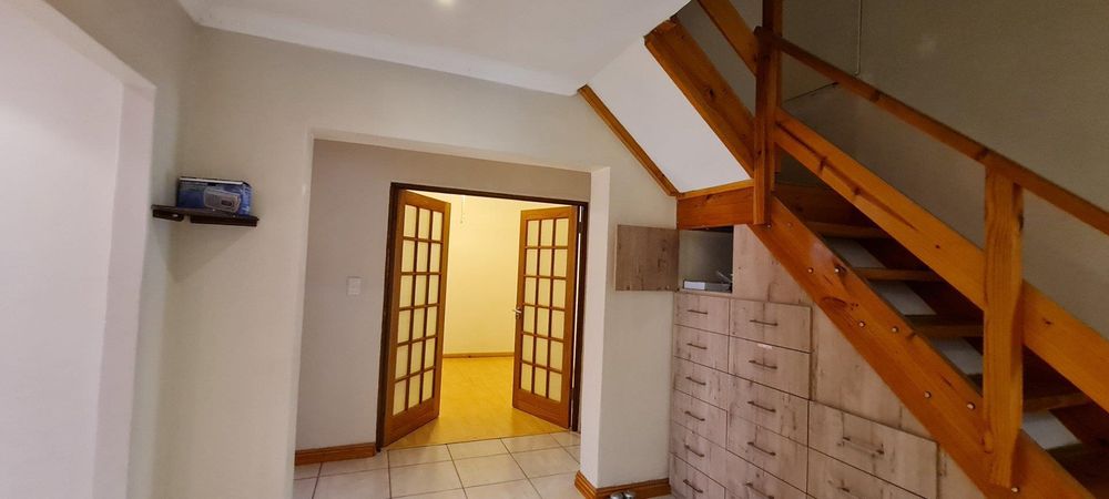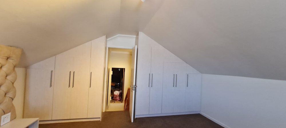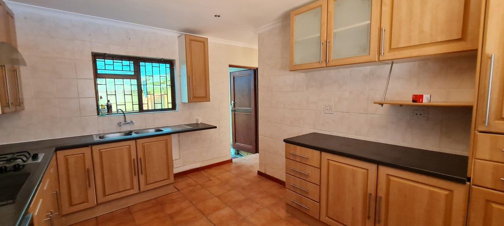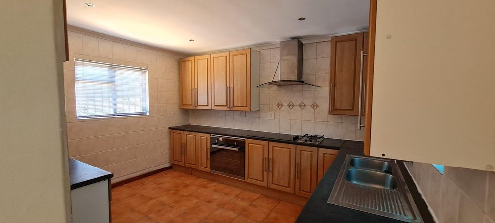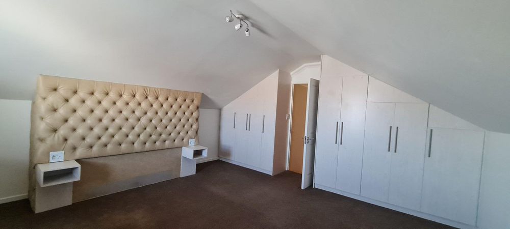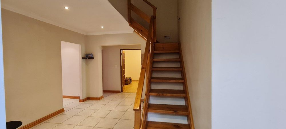 The kitchen is a highlight of the home, showcasing beautiful woodwork and an open layout that is perfect for hosting guests. The courtyard and pool area are easily accessible from the kitchen, enhancing the overall entertainment value of the property. Upstairs, there are six loft-style bedrooms with built-in cupboards, offering plenty of storage space. The living room and separate dining area are both sizable, with the dining area capable of accommodating a 12-seater table. The property also includes a four-car carport with automation, as well as additional security features such as trellidoors, burglar bars, and spikes for added protection.
