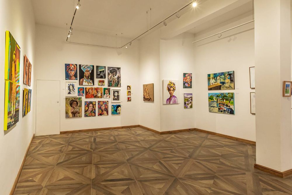 This refurbishment preserved key historical features like the molded ceilings, fireplaces, and yellow wood floors, while adding modern touches such as imported Italian tiles in the gallery spaces.