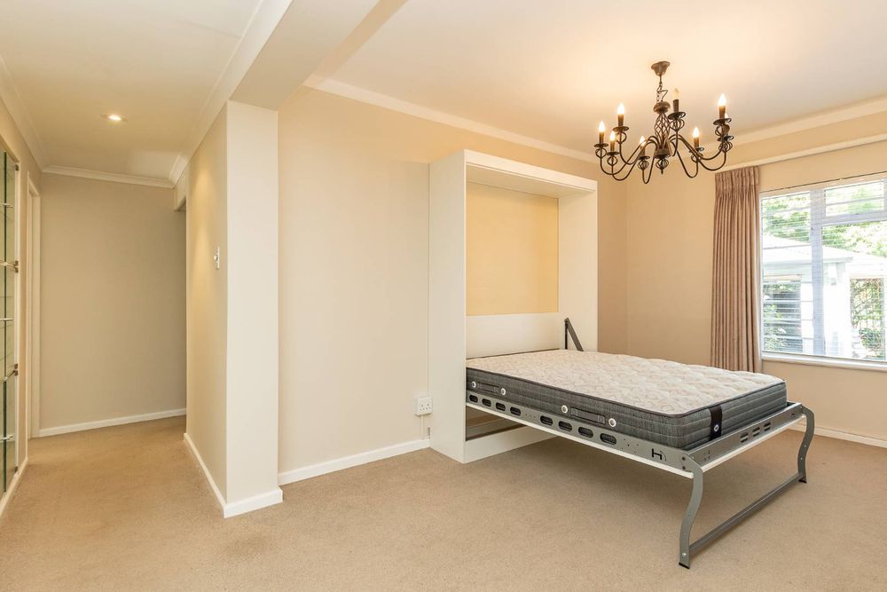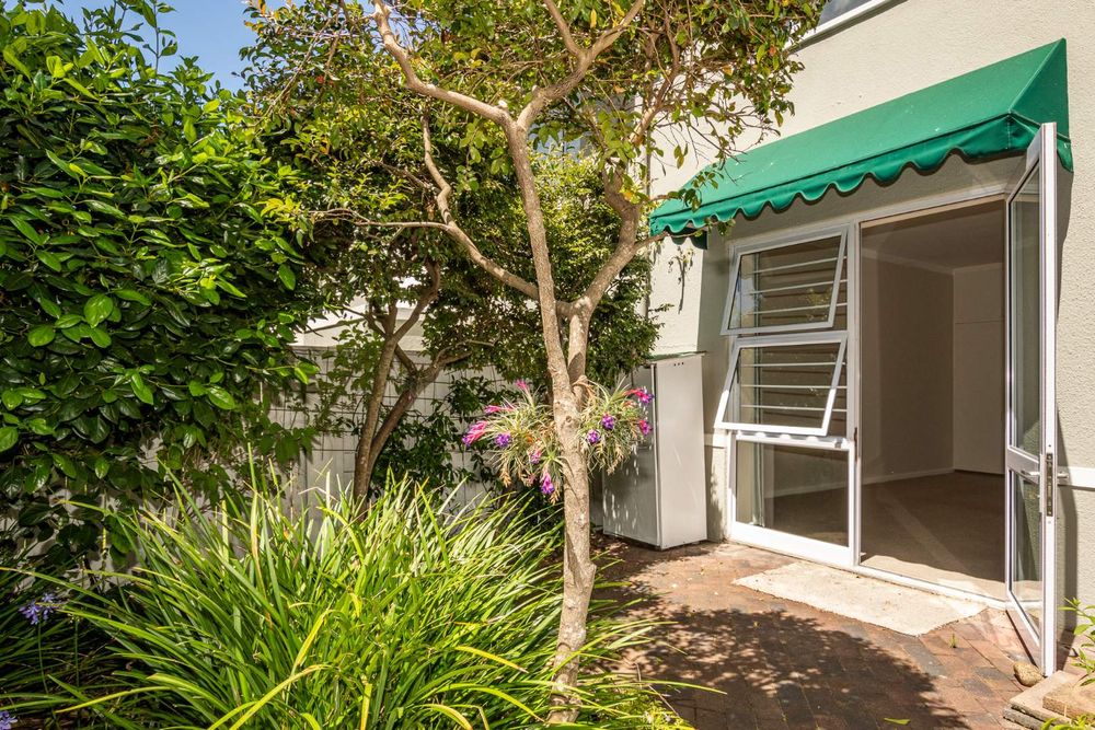 First of all, you will love the location of this apartment, and then you will fall in love with the garden. Nestled in a secure and sought-after neighborhood in Chelsea Village, this home welcomes you with spaciousness, light, and warmth just two steps inside. You'll be captivated by the charming garden (for exclusive use), which offers a sense of peace and is enjoyed by bird life. This 100 sqm peaceful sanctuary offers privacy and is perfect for unwinding in the tranquil garden, providing you with a choice of seating or an outside garden room for working from home. The garden room is currently equipped with built-in cupboards, chairs, and a wash basin. Another option is to add a bed and convert it into a bedroom. It truly is charming.