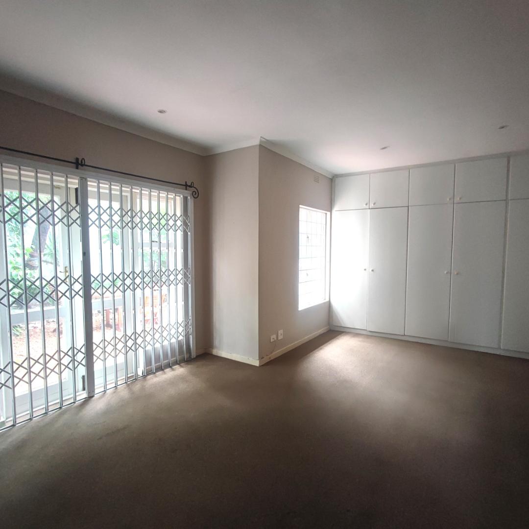 The home features an exceptionally spacious main bedroom, complete with ample cupboard space and full en-suite bathroom. Double doors open up onto the garden area.